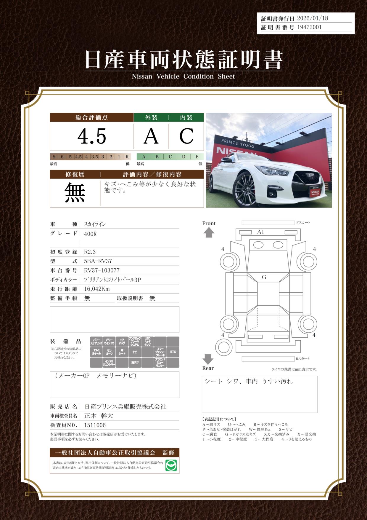 スカイライン 3000cc 3.0 400R 純正フルセグナビ クルコン 本革 BOSE