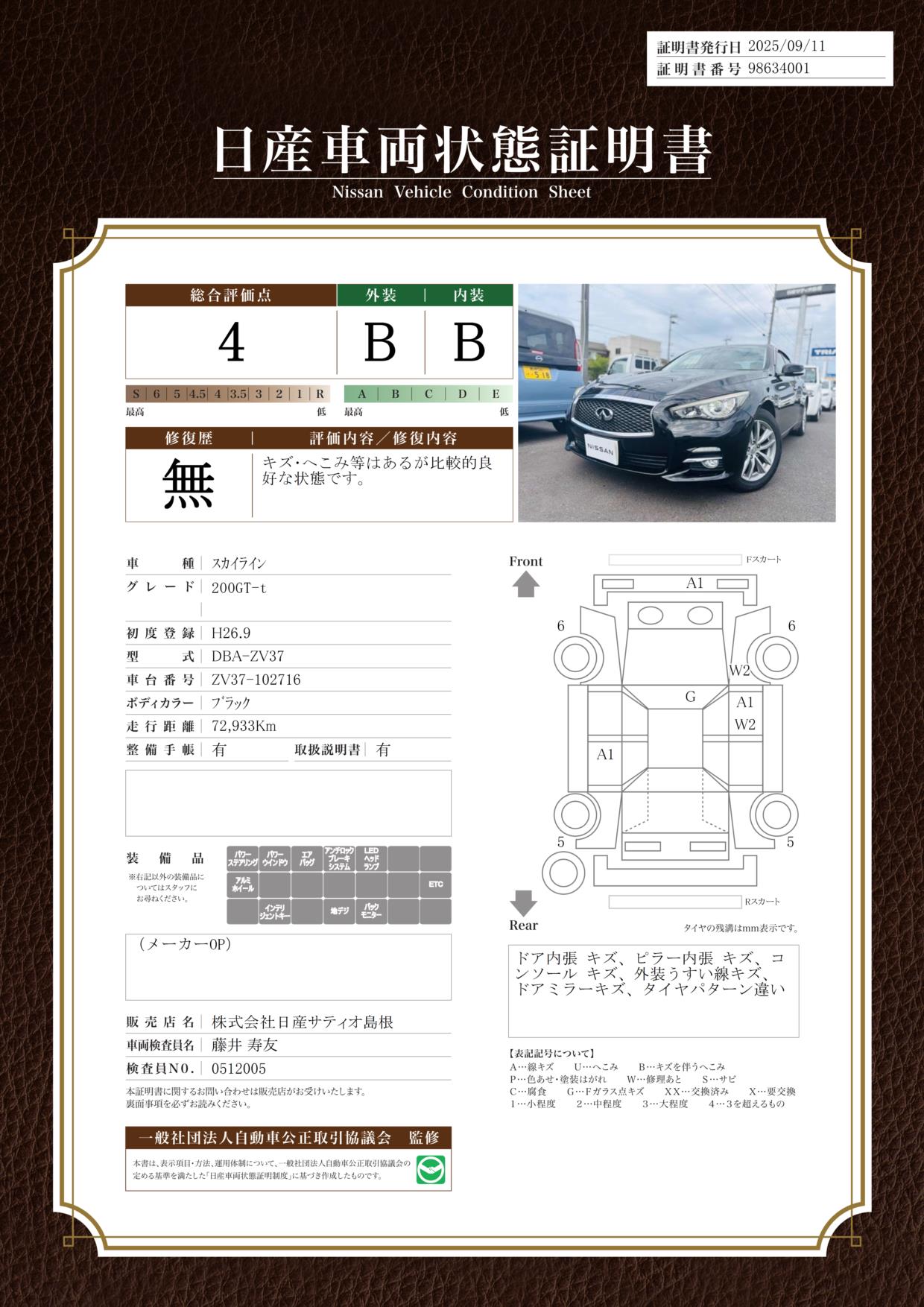スカイライン 2000cc 2.0 200GT-t ワンオーナー クルーズコントロール ETC
