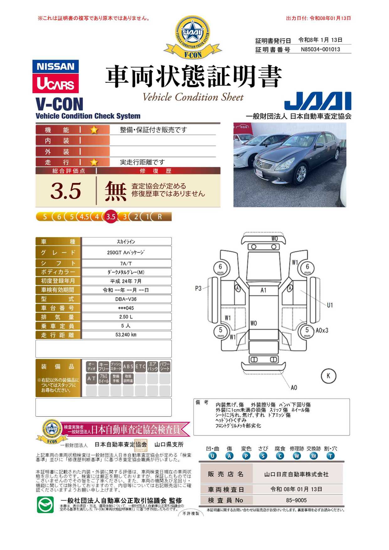車両状態証明書を見る