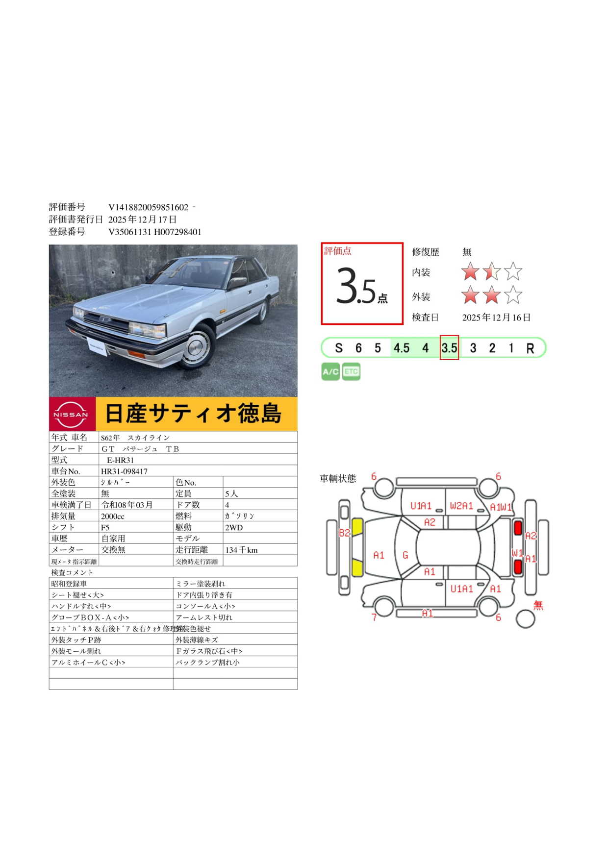 現状括弧書き内の年月まで車検有効期限が残っていますが、ご成約時に新しく車検を取り直します。なお取り直しの費用は車両価格に含まれています。