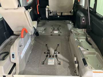 簡単な操作だけで昇降するリフターを装備。安心してご使用いただけます。車いす4名仕様 5ナンバー幅で車いす4名乗車ができる。セカンドシートを展開すれば車いす2名+8名