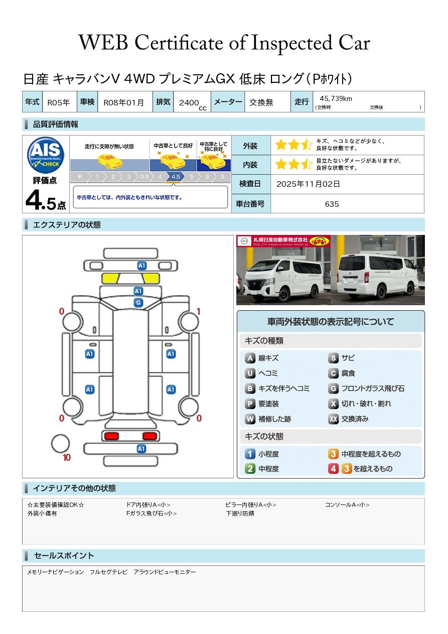 現状車検切れの状態ですが、ご成約時に新しく車検を実施します。車検費用は車両価格に含まれています。