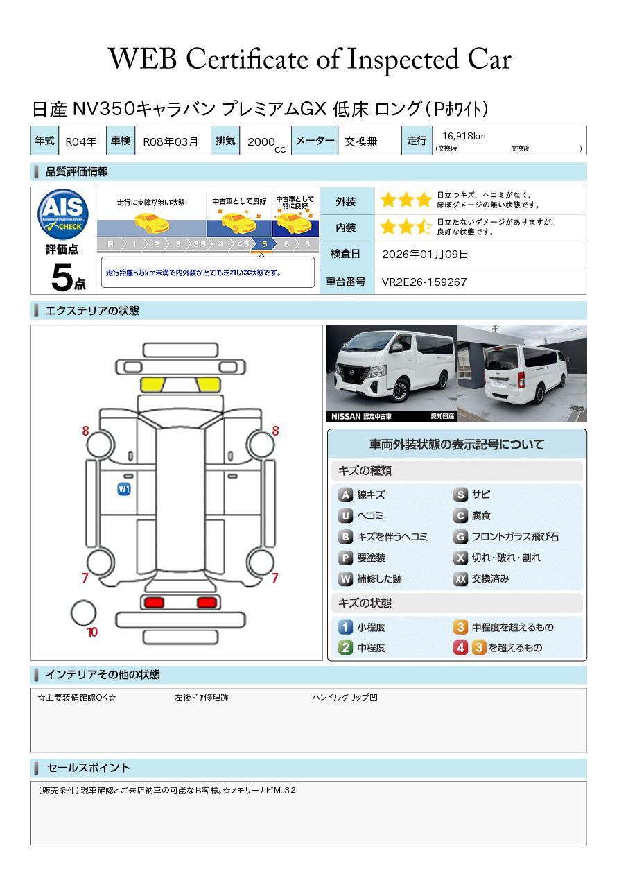 現状括弧書き内の年月まで車検有効期限が残っていますが、ご成約時に新しく車検を取り直します。なお取り直しの費用は車両価格に含まれています。