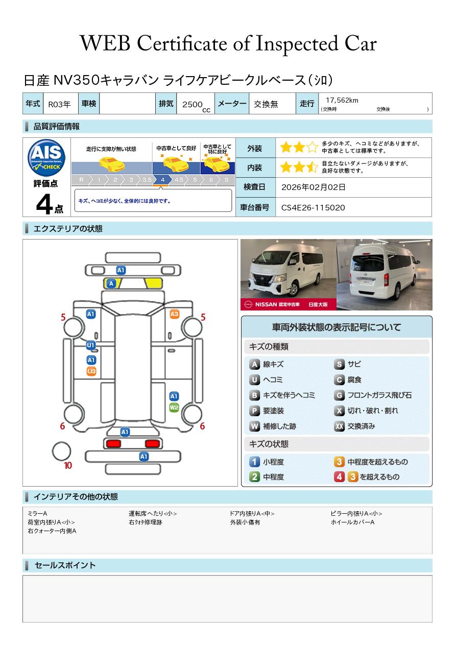 現状括弧書き内の年月まで車検有効期限が残っていますが、ご成約時に新しく車検を取り直します。なお取り直しの費用は車両価格に含まれています。
