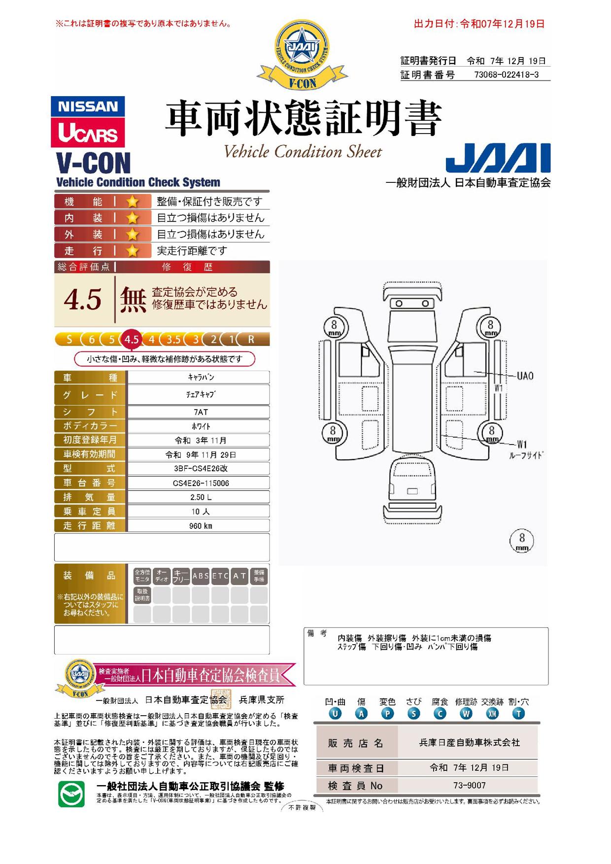 現状括弧書き内の年月まで車検有効期限が残っていますが、ご成約時に新しく車検を取り直します。なお取り直しの費用は車両価格に含まれています。