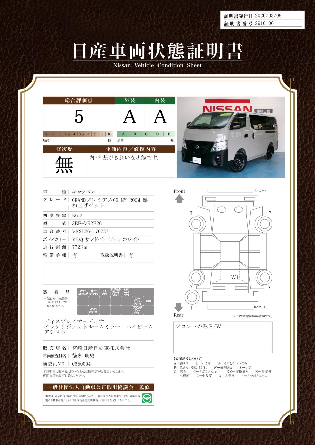 日産車両状態証明