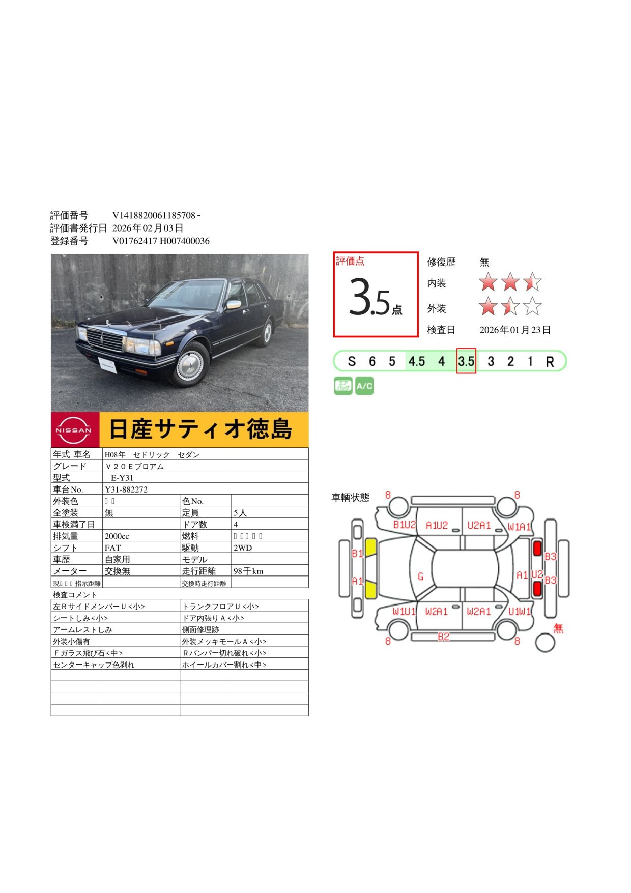 セドリックセダン 2000cc 2.0 V20Eブロアム リアパワーシート タイベル交換歴有