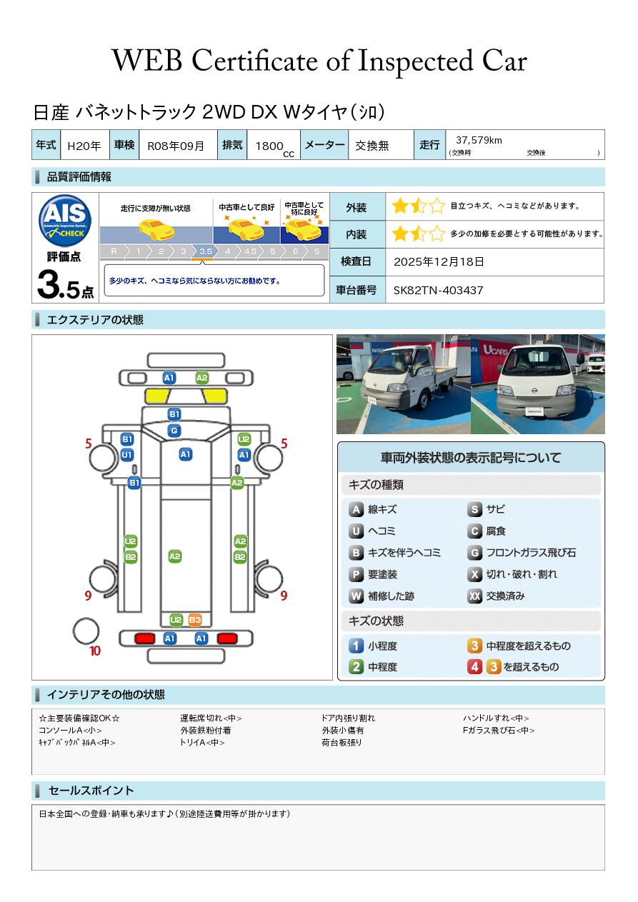現状括弧書き内の年月まで車検有効期限が残っていますが、ご成約時に新しく車検を取り直します。なお取り直しの費用は車両価格に含まれています。