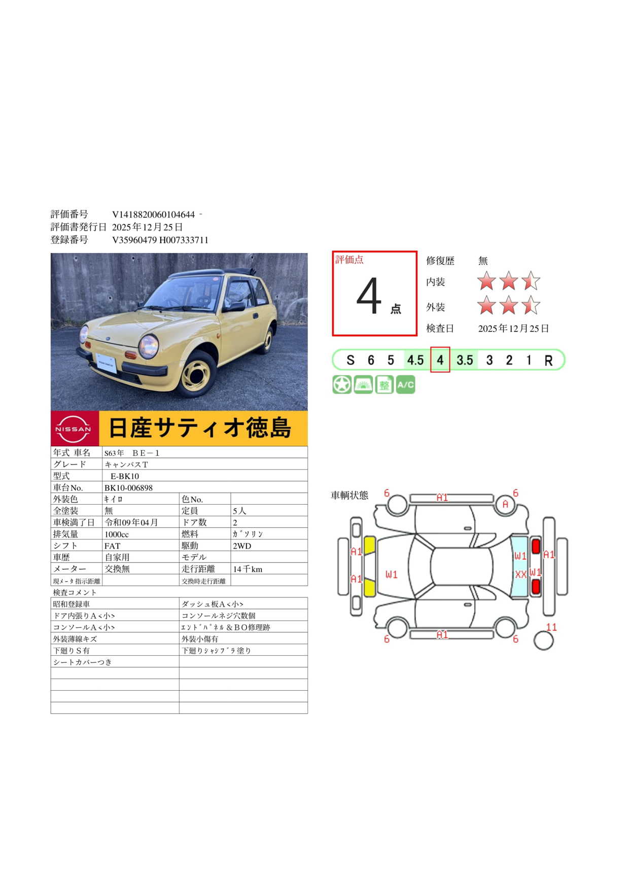 現状車検切れの状態ですが、ご成約時に新しく車検を実施します。車検費用は車両価格に含まれています。
