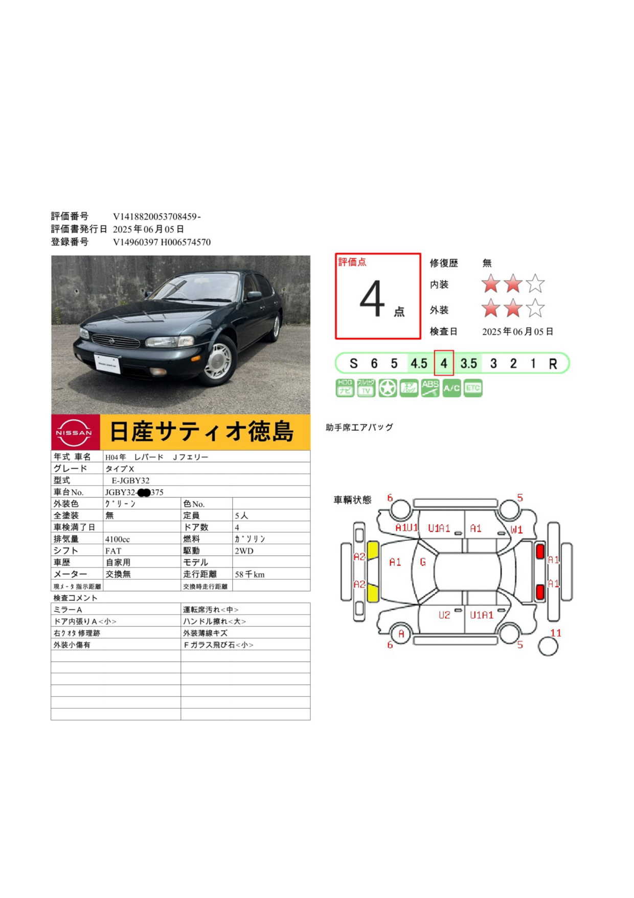 現状括弧書き内の年月まで車検有効期限が残っていますが、ご成約時に新しく車検を取り直します。なお取り直しの費用は車両価格に含まれています。