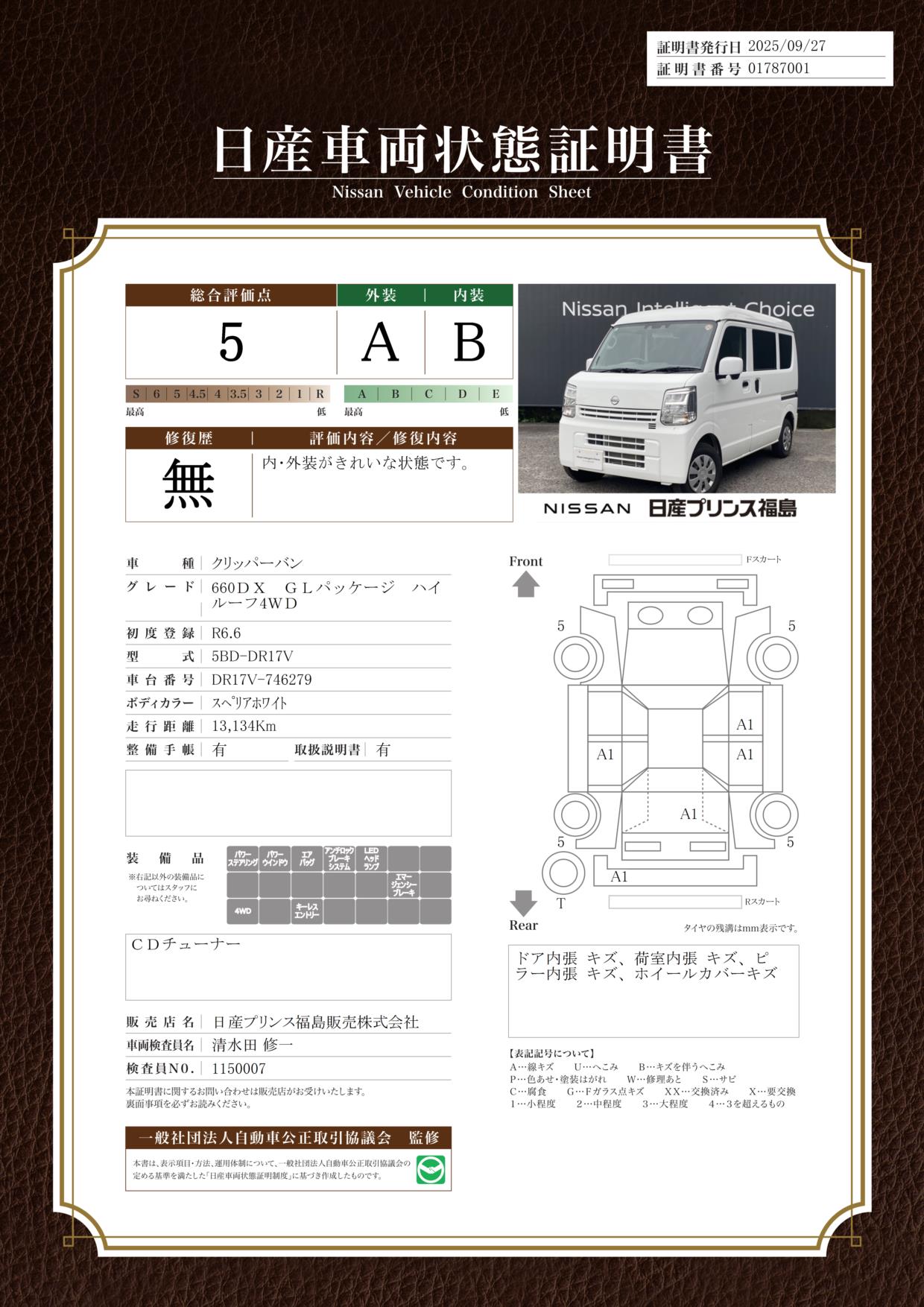 クリッパー 660cc 660 DX GLパッケージ ハイルーフ 4WD 当社社用車 AM/FM/ラジオCDオーディオ 横