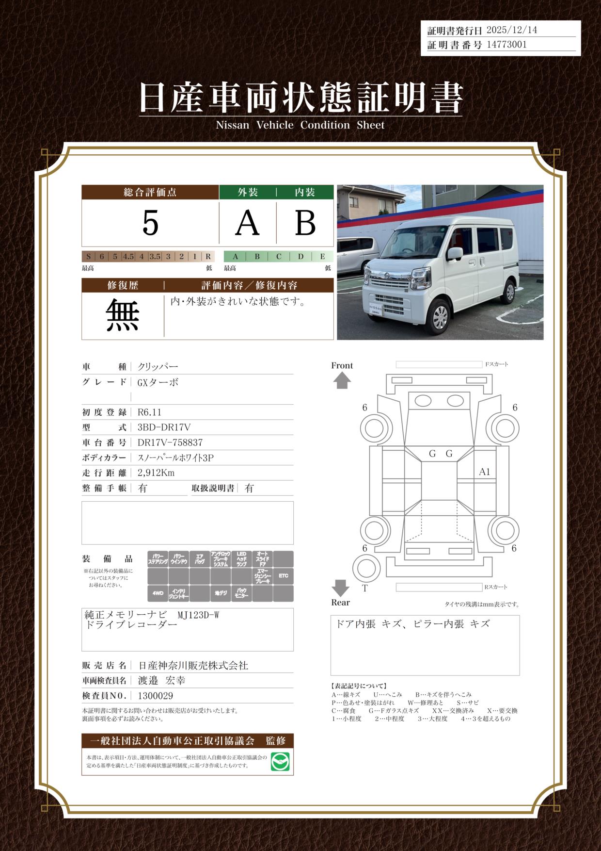 【メーカー保証継承】 日産神奈川の弊社店舗で社内使用社有車でした。ご納車前に整備をします☆これにより保証が付きます→全国の日産のお店で使える保証です☆