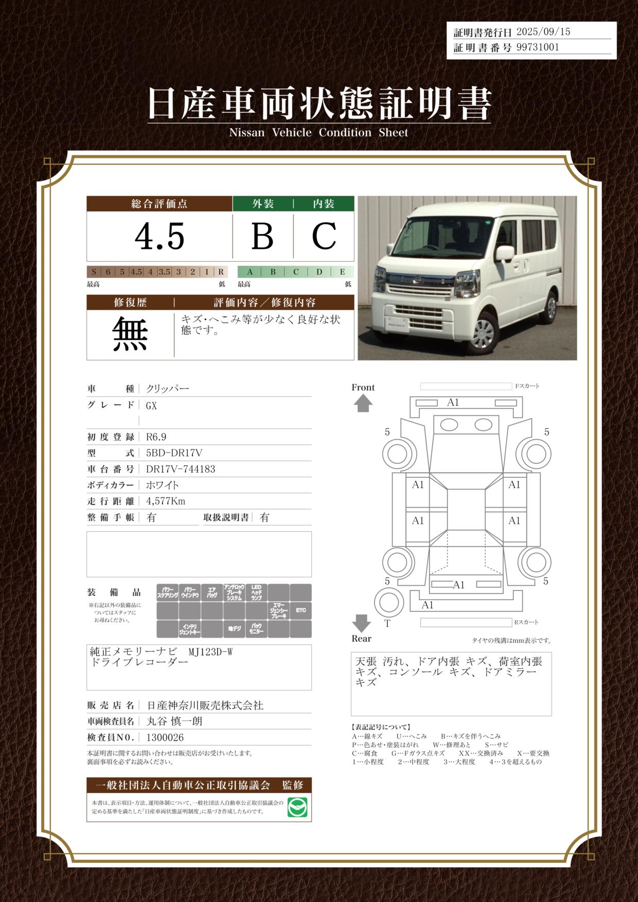 現状括弧書き内の年月まで車検有効期限が残っていますが、ご成約時に新しく車検を取り直します。なお取り直しの費用は車両価格に含まれています。