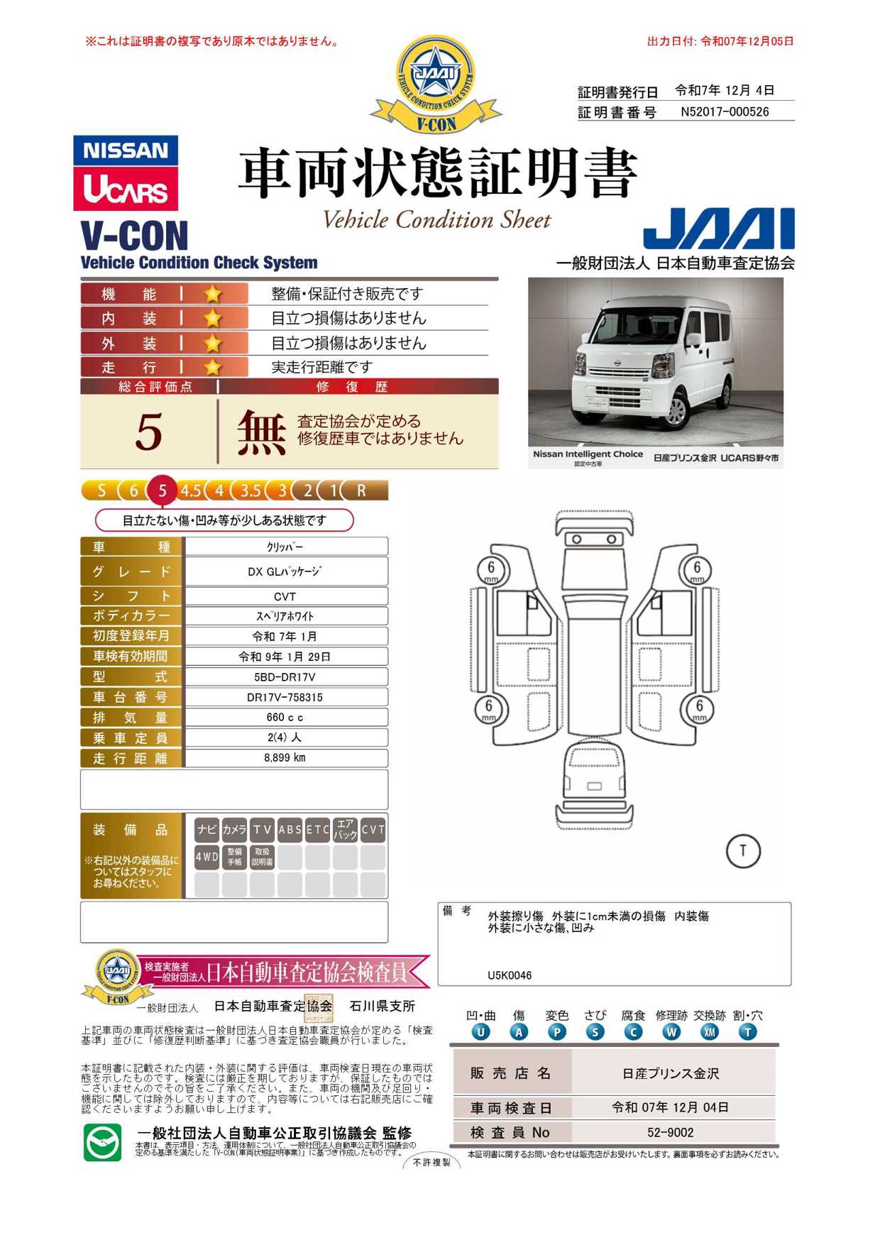 現状括弧書き内の年月まで車検有効期限が残っていますが、ご成約時に新しく車検を取り直します。なお取り直しの費用は車両価格に含まれています。