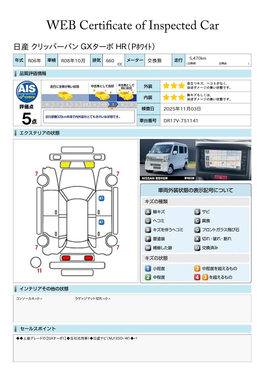 現状括弧書き内の年月まで車検有効期限が残っていますが、ご成約時に新しく車検を取り直します。なお取り直しの費用は車両価格に含まれています。