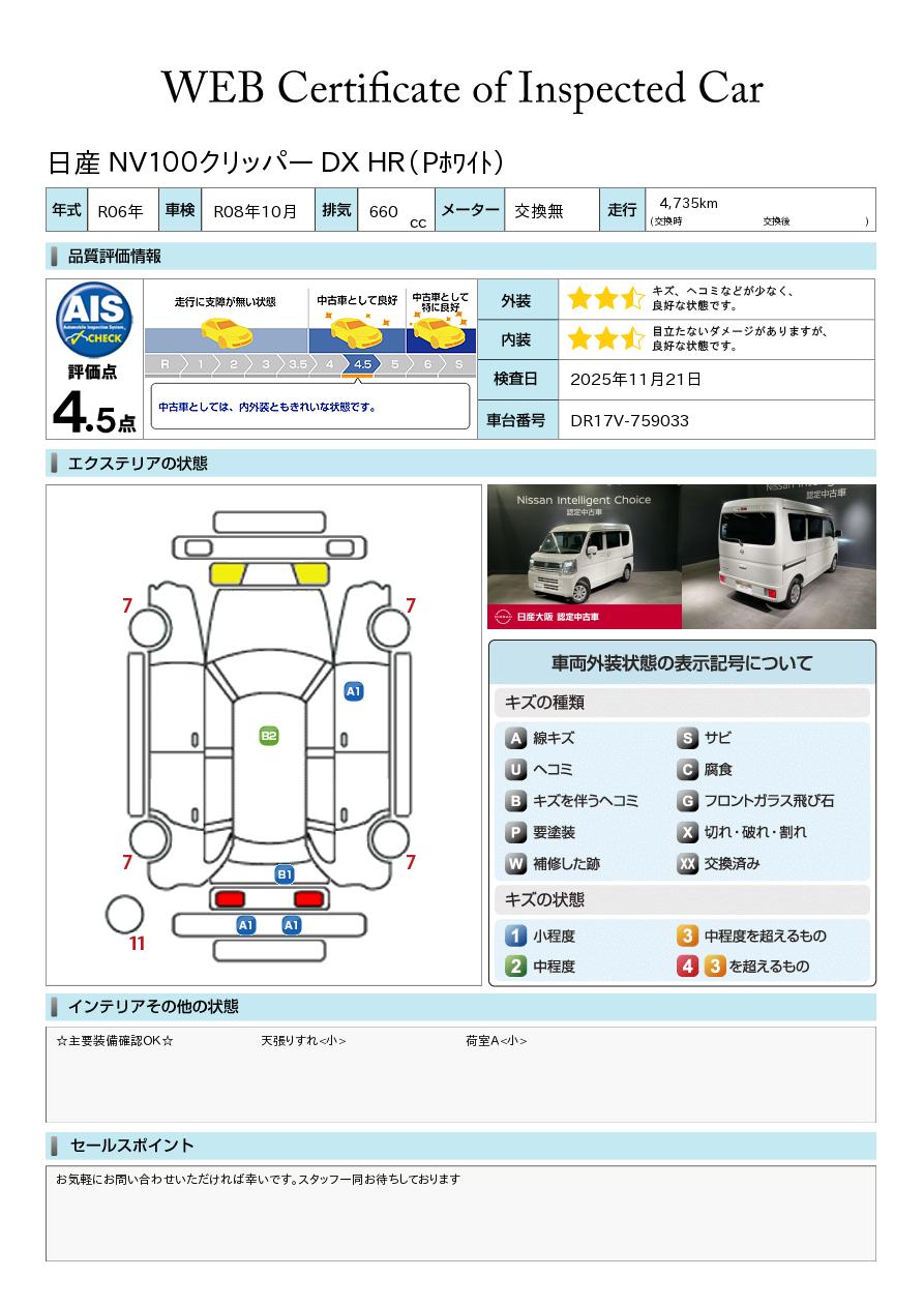 現状括弧書き内の年月まで車検有効期限が残っていますが、ご成約時に新しく車検を取り直します。なお取り直しの費用は車両価格に含まれています。