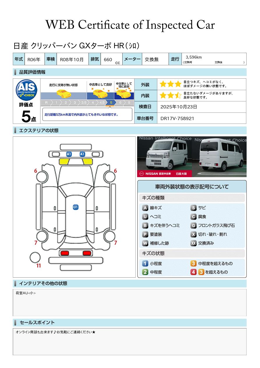 クリッパー 660cc 660 GX ハイルーフ 当社元試乗車&メモリーナビ&フルセグ