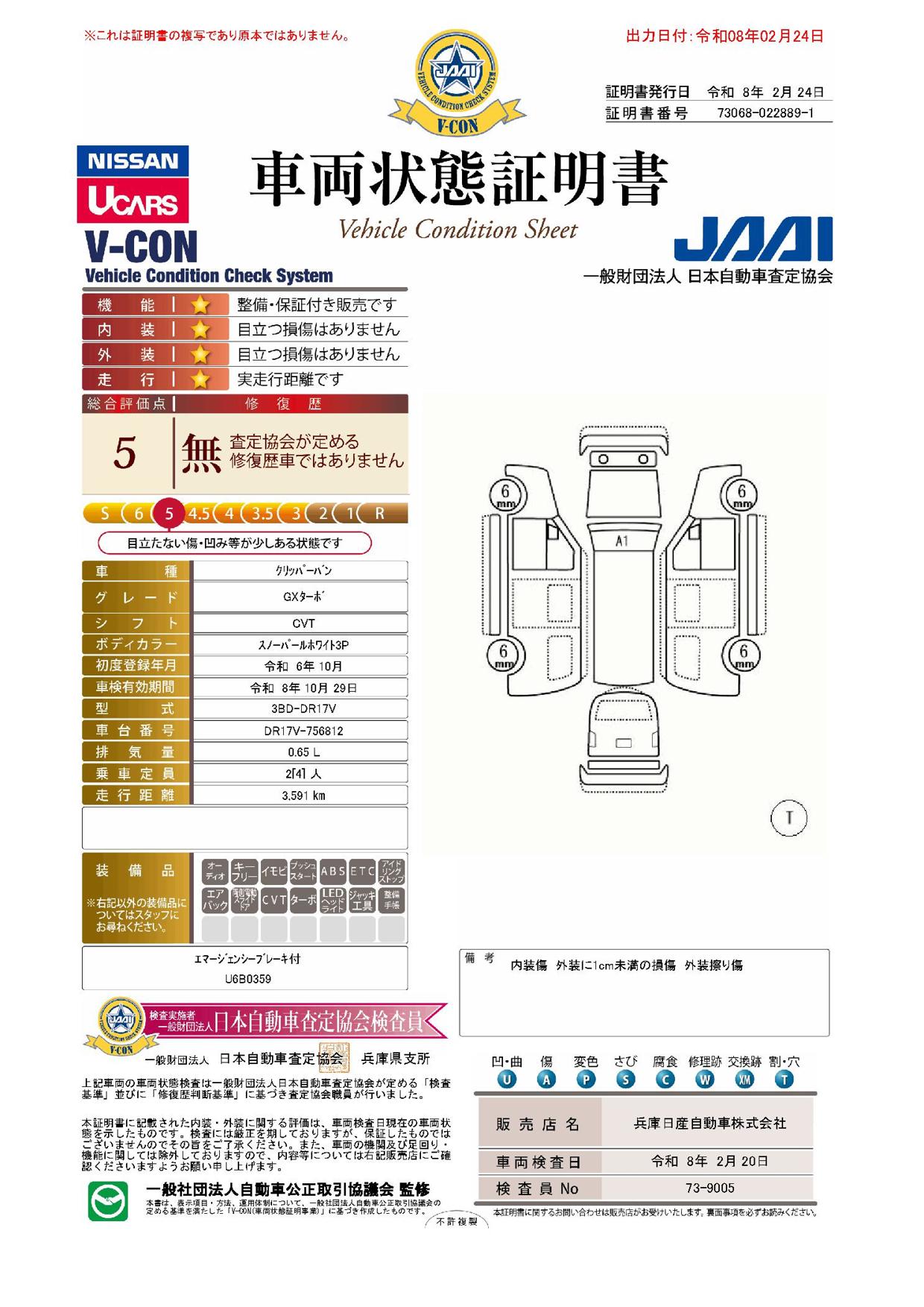 「車両状態証明書」は、査定協会監修のプロの検査員が公正かつ確かな基準で検査した”安心の証”です。