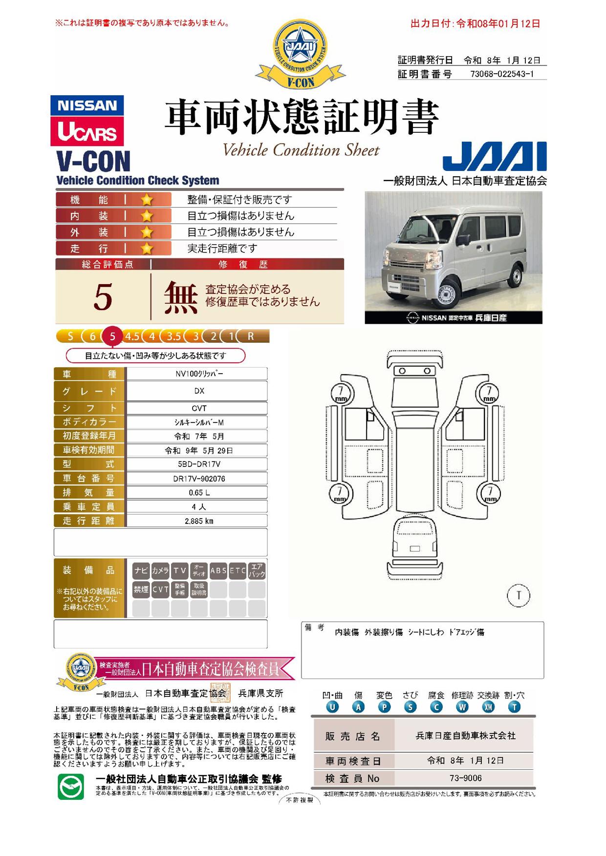 現状括弧書き内の年月まで車検有効期限が残っていますが、ご成約時に新しく車検を取り直します。なお取り直しの費用は車両価格に含まれています。