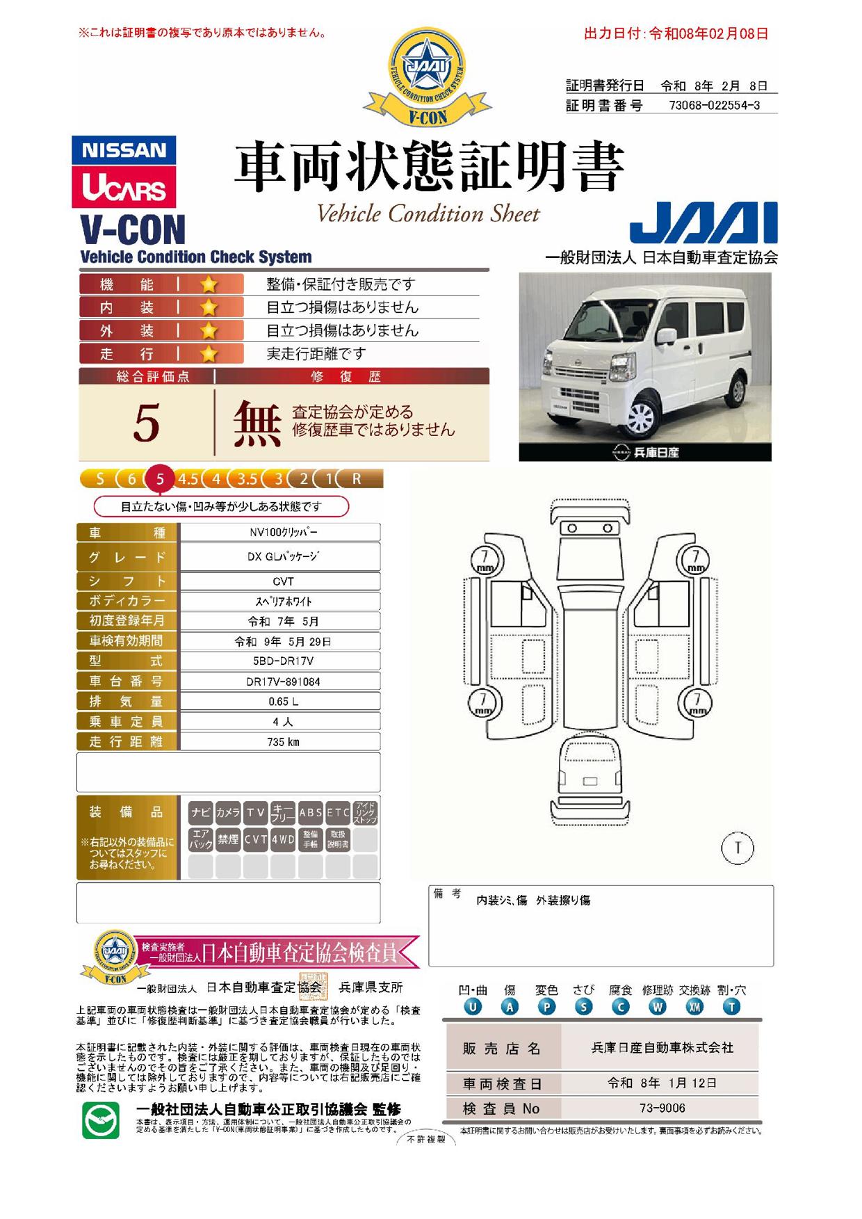 「車両状態証明書」は、査定協会監修のプロの検査員が公正かつ確かな基準で検査した”安心の証”です。