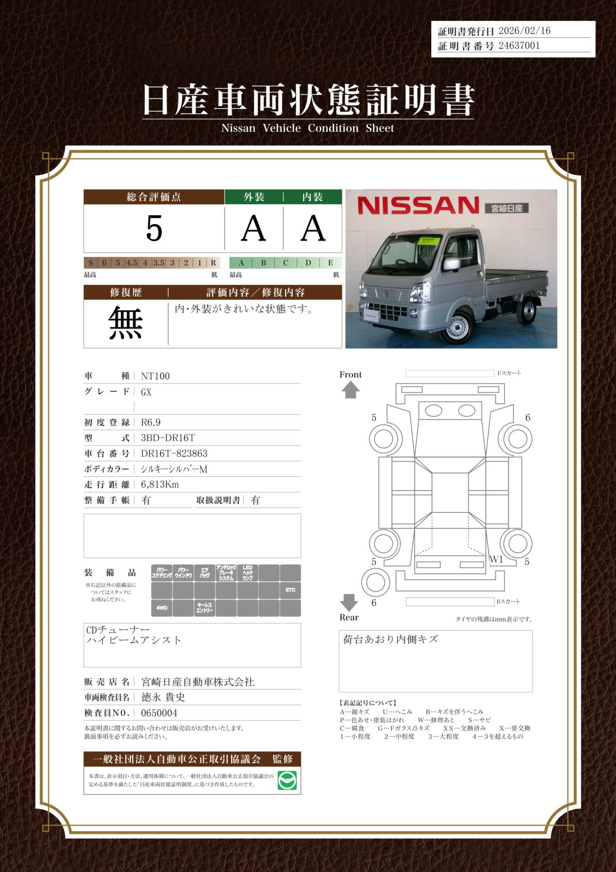 評価機関 : 日産車両状態証明