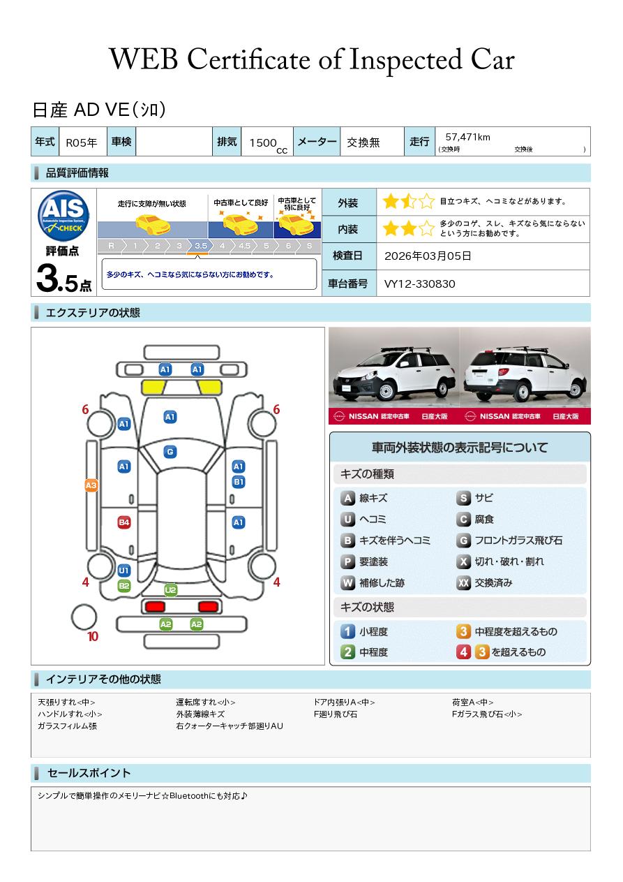 現状括弧書き内の年月まで車検有効期限が残っていますが、ご成約時に新しく車検を取り直します。なお取り直しの費用は車両価格に含まれています。
