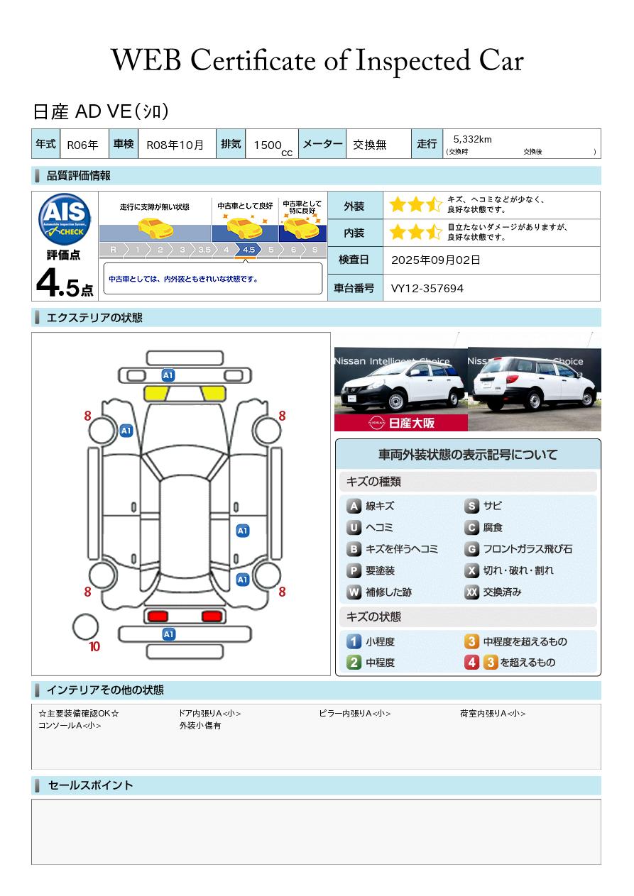 AD 1500cc 1.5 VE 当社元試乗車&メモリーナビ&フルセグTV