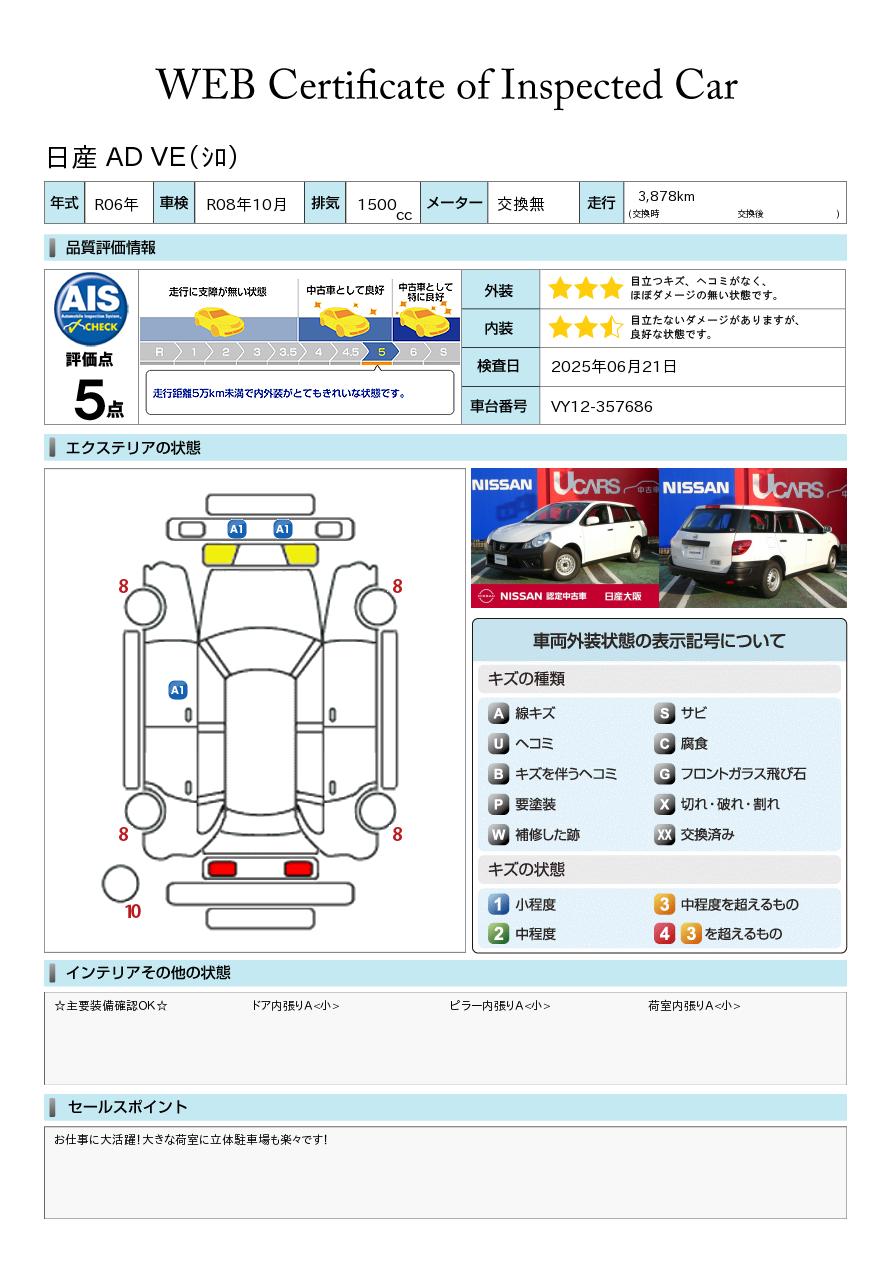 現状括弧書き内の年月まで車検有効期限が残っていますが、ご成約時に新しく車検を取り直します。なお取り直しの費用は車両価格に含まれています。