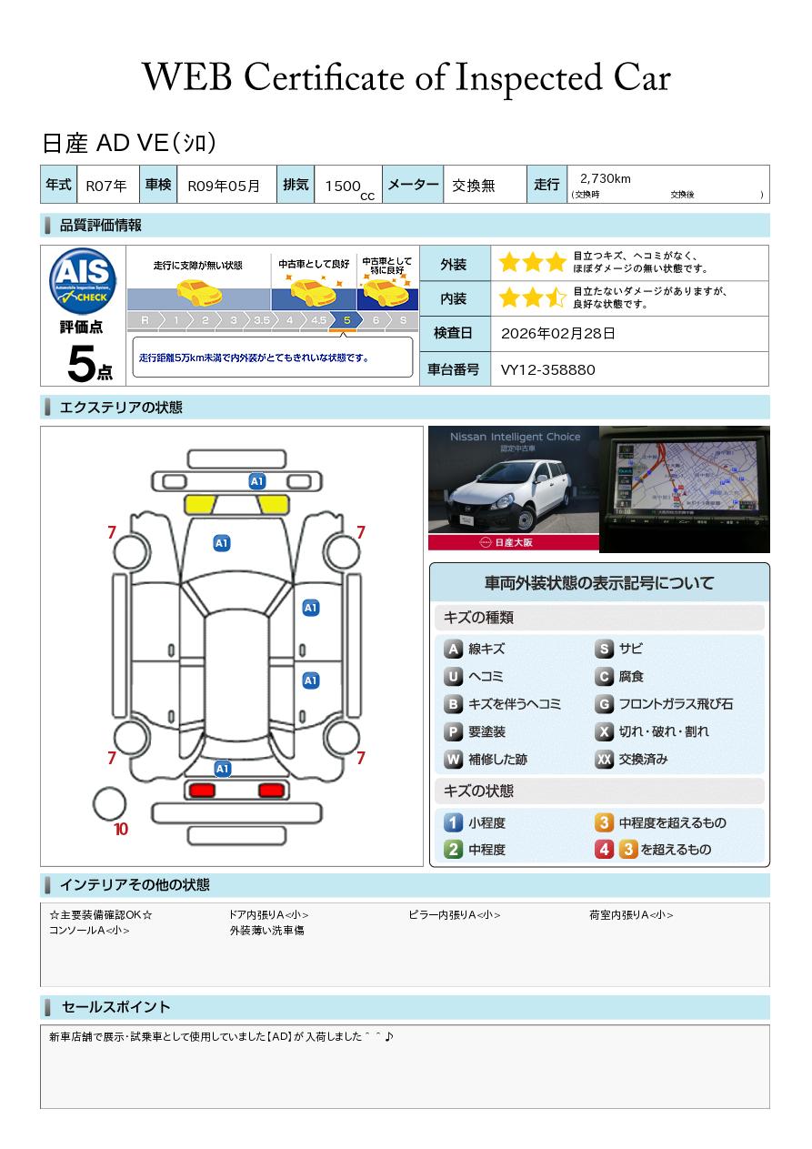 「車両状態証明書」は、査定協会監修のプロの検査員が公正かつ確かな基準で検査した”安心の証”です。