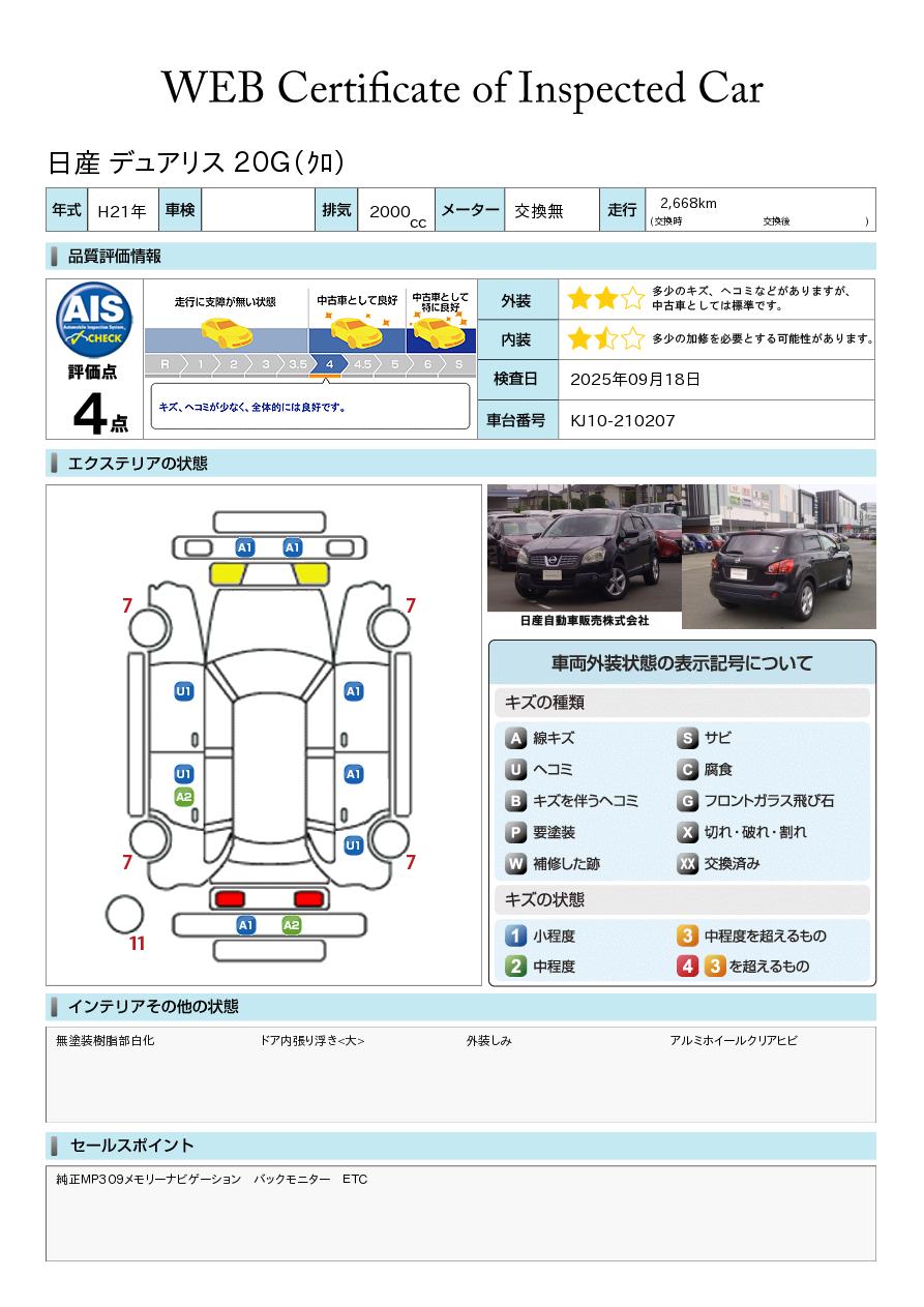 デュアリス 2000cc 2.0 20G 新品バッテリー 新品タイヤ