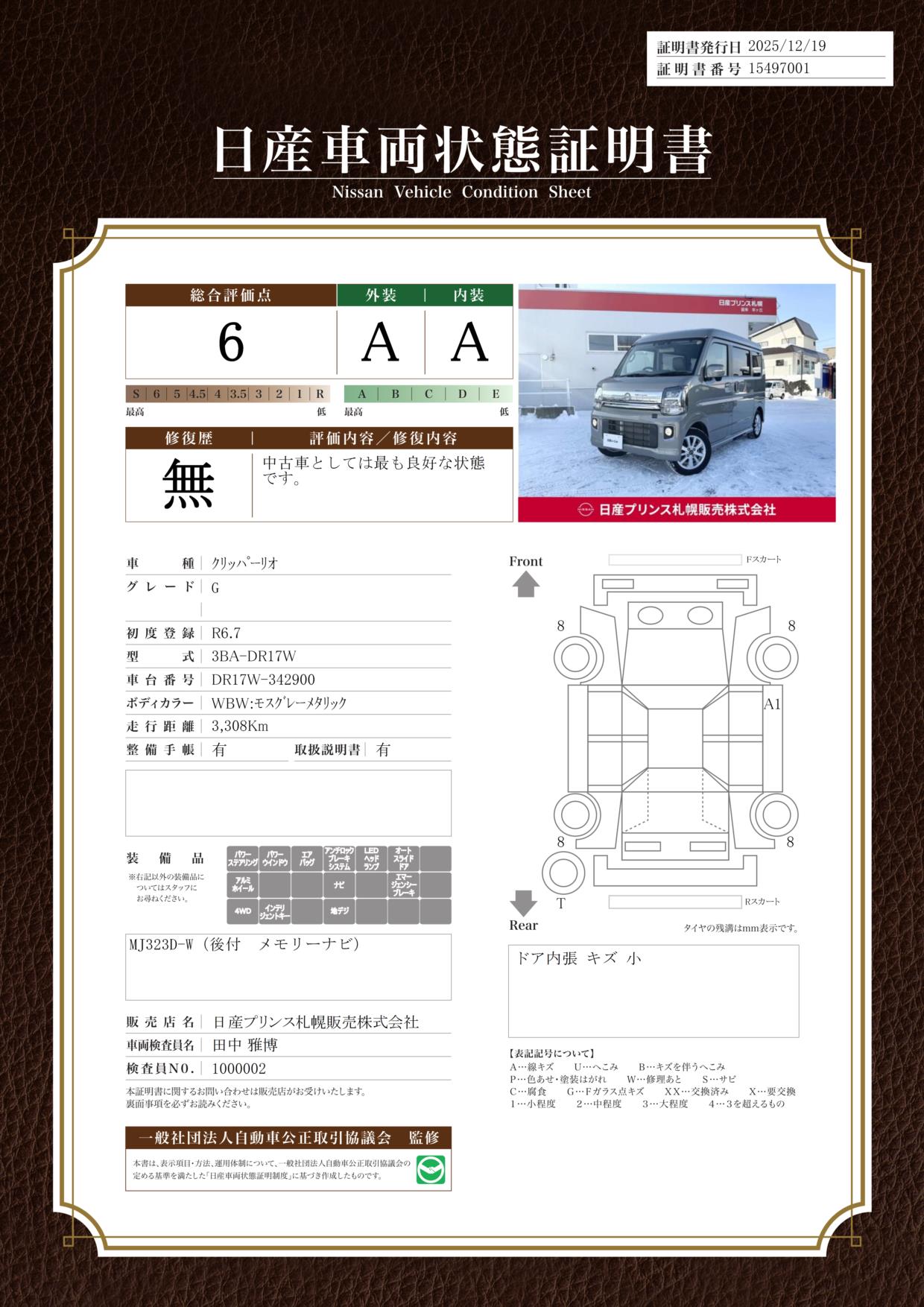 クリッパーリオ 660cc 660 G ハイルーフ 4WD 試乗車アップ/衝突軽減ブレーキ/前後踏み間