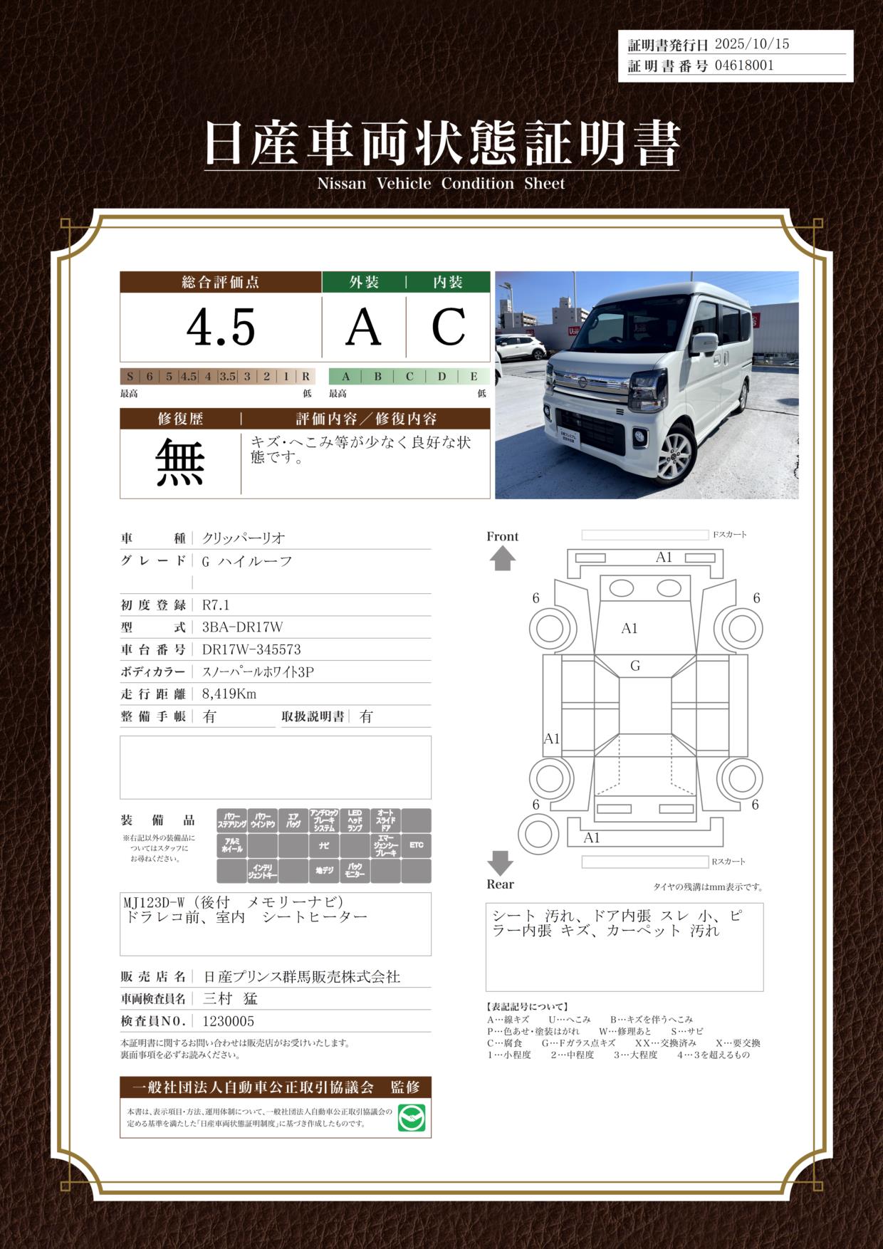 現状車検切れの状態ですが、ご成約時に新しく車検を実施します。車検費用は車両価格に含まれています。