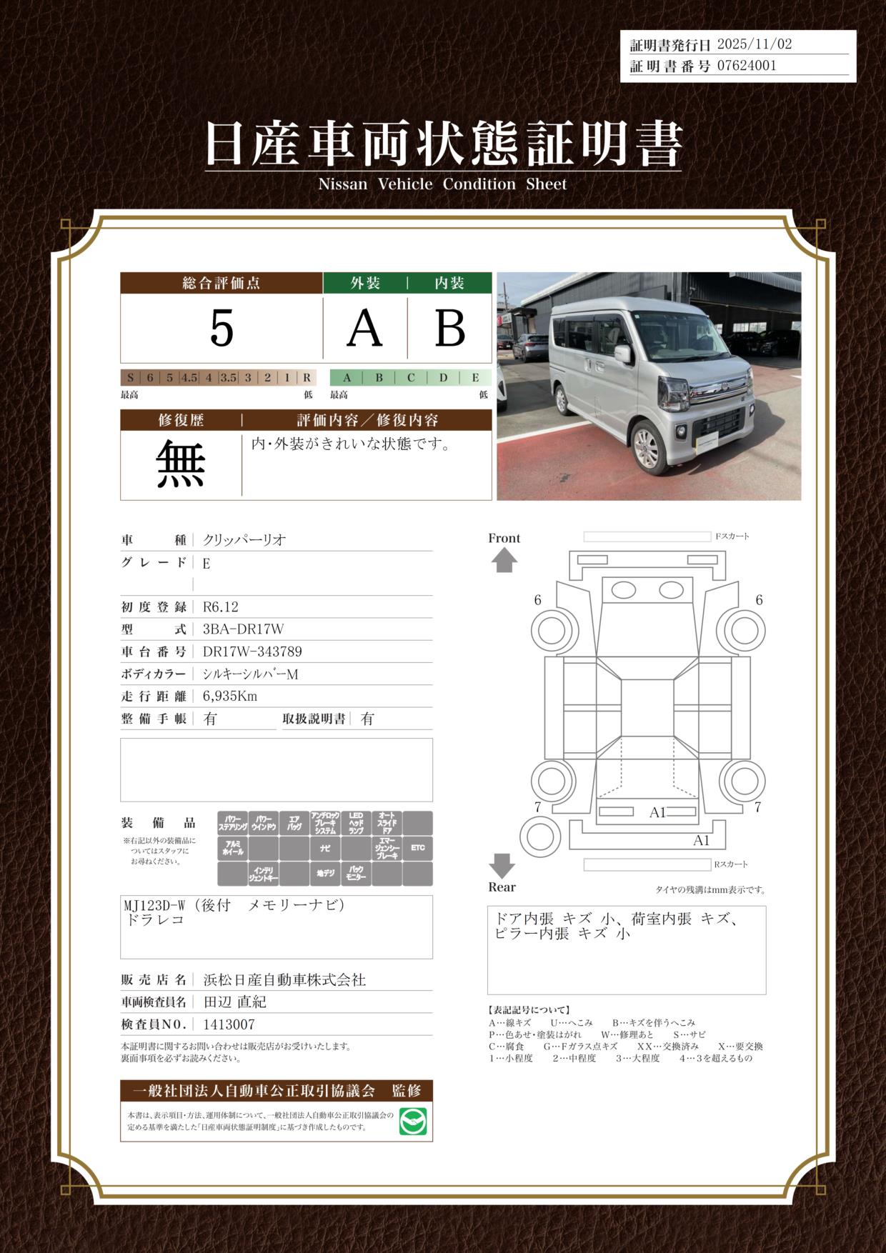 クリッパーリオ 660cc 660 E ハイルーフ ナビTV 前後方ドラレコ ETC