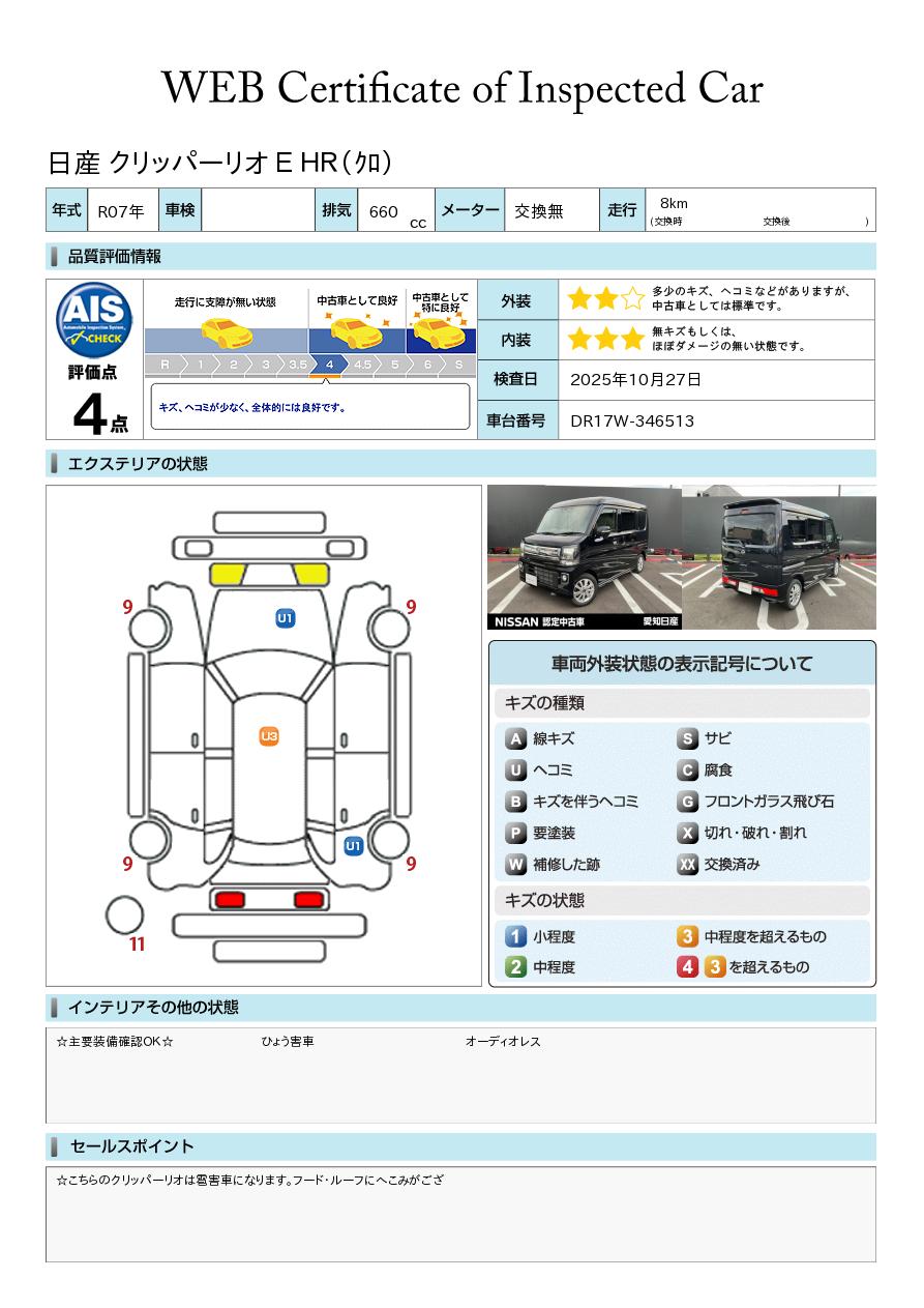 ☆こちらのクリッパーリオは雹害車になります。フード・ルーフにへこみがございますが安心してお乗り頂けます。なおご来店頂き、現車確認できるお客様のみの販売とさせていただきます。
