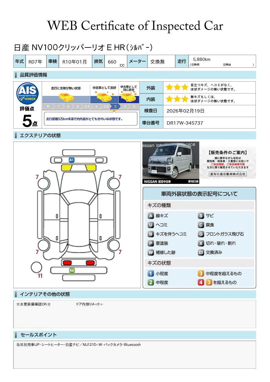 「車両状態証明書」は、査定協会監修のプロの検査員が公正かつ確かな基準で検査した”安心の証”です。