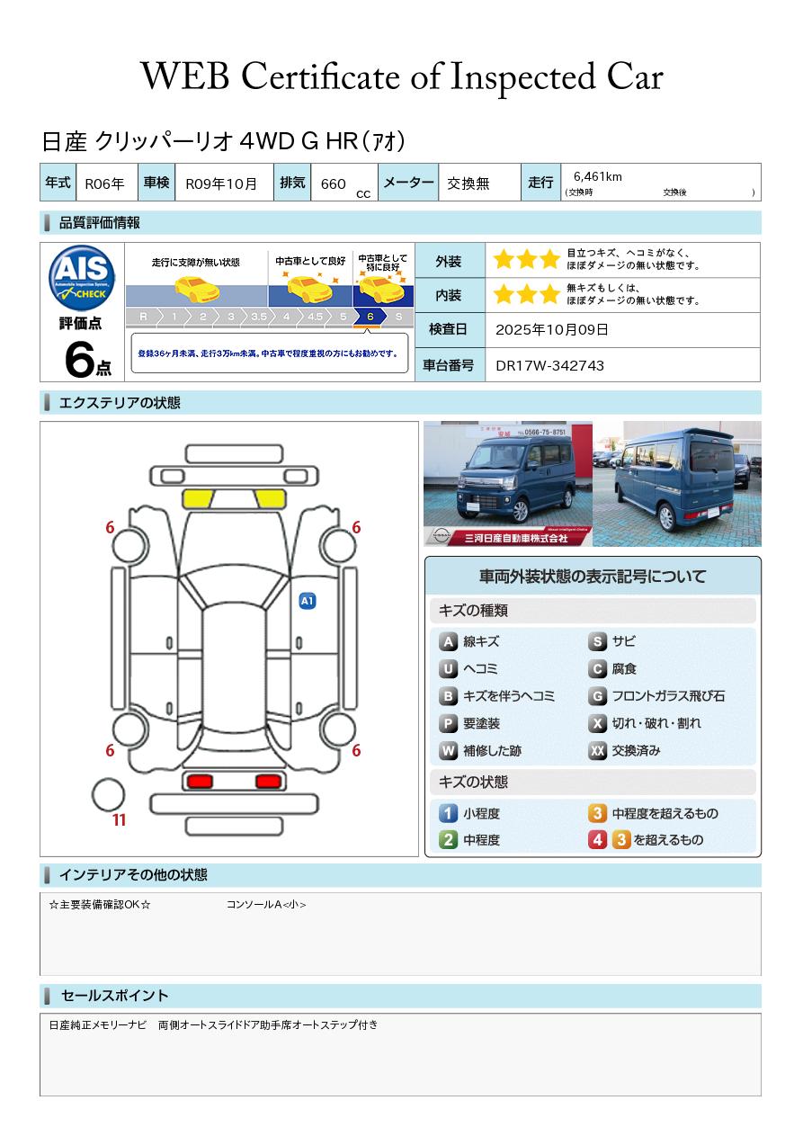 クリッパーリオ 660cc 660 G ハイルーフ 4WD 日産純正メモリーナビ  オートスライドド