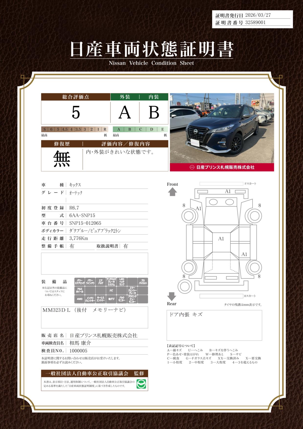 「車両状態証明書」は、査定協会監修のプロの検査員が公正かつ確かな基準で検査した”安心の証”です。