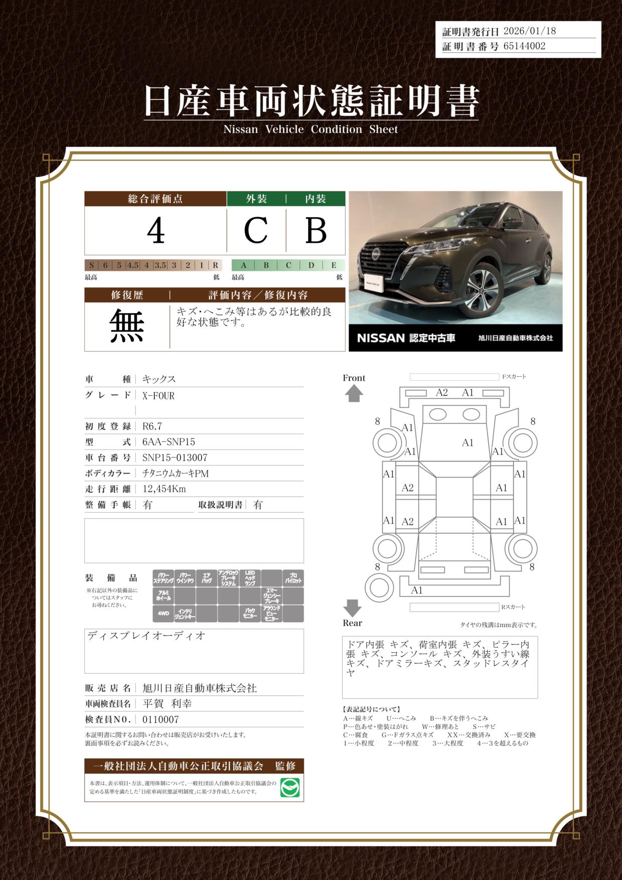 キックス 1200cc 1.2 X FOUR (e-POWER) 4WD ディスプレイオ-ディオ