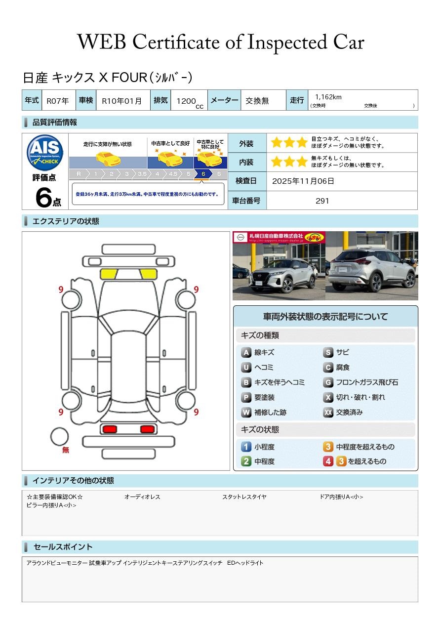 日産車はモチロンのこと 他メーカーでも軽自動車からミニバンまで幅広く展示中! 「くるまるく」店の中でもスケールの大きい店舗ですので、在庫も豊富に常時40台~60台展示中! AIS評価書付車両(第三者評価書)も多数ございますので、ご安心ください♪ 安心の日産「ワイド保証」や「自社ピット」完備! スタッフ一同お待ち申し上げております^^ 全車走行メーター管理システム導入☆(日本オートオークション協議会)