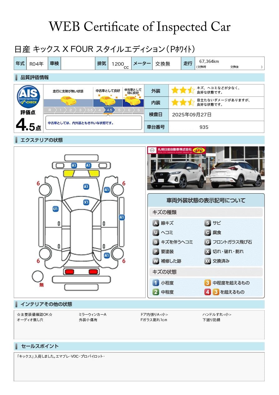 日産車は勿論のこと他メーカーでもコンパクト車からワゴン車まで幅広く展示中! 「くるまるく」店の中でもスケールの大きい店舗ですので、在庫数も豊富に常時90台~100台展示中! AIS評価書付車両(第三者評価書)も多数ございますので、ご安心ください♪ 安心の日産「ワイド保証」や「自社ピット」完備! スタッフ一同お待ち申し上げております^^ 全車走行メーター管理システム導入☆(日本オートオークション協議会)