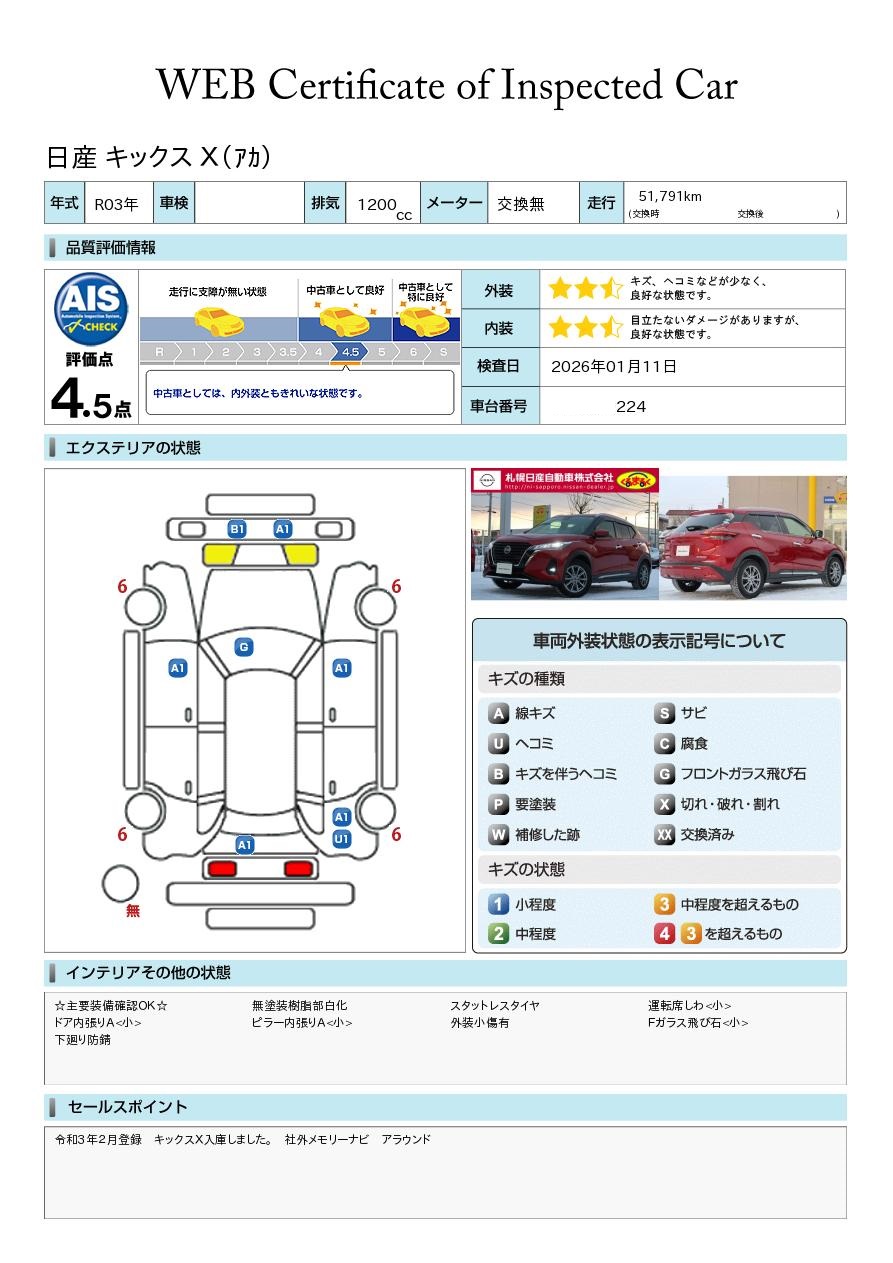 令和3年2月登録 キックスX入庫しました。 社外メモリーナビ アラウンドモニター スマートルームミラー ETC LEDヘッドライト 衝突被害軽減ブレーキ シートヒーター