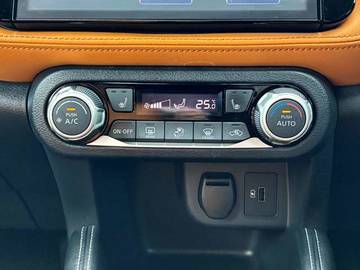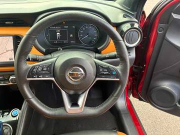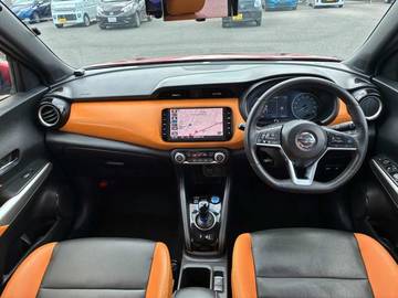 日産のコンパクトSUV『キックス』。アクティブなオレンジのインテリアが印象的です。これからの季節にうれしいシートヒーター装備のツートーンインテリア。ナビ・全...
