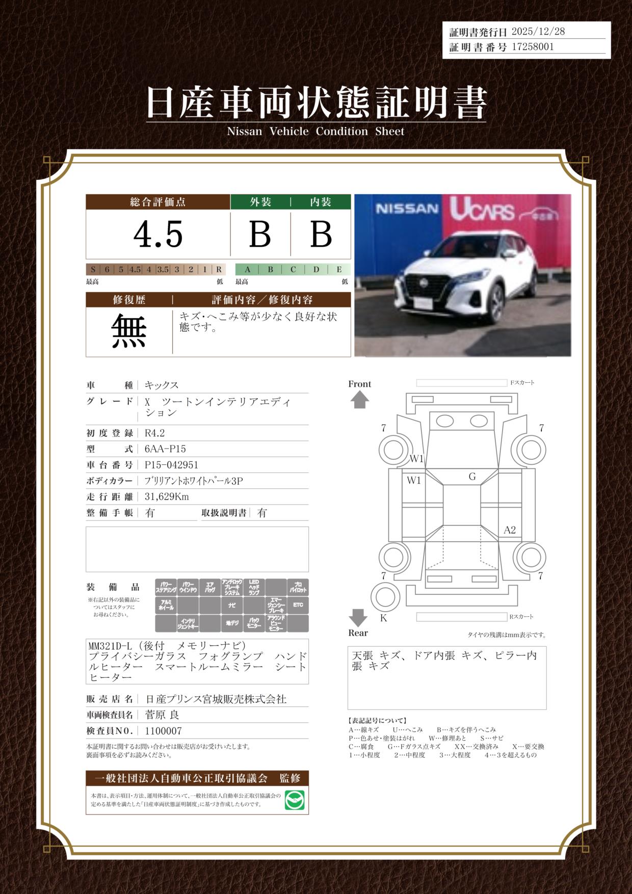 日産のコンパクトSUV『キックス』が入庫いたしました(*^▽^*)●プロパイロット●MM321D-L●アラウンドビューモニター●シートヒーター●LEDヘッドライト●ETC