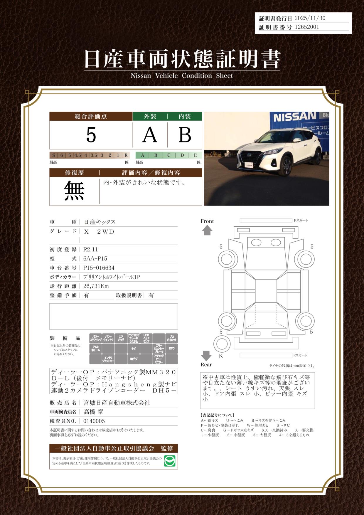 ●最大104項目の点検と、2年・1年・3ヵ月の保証がつきます。 ●クレジット払い可能、実質年率5.9%、頭金の有無、均等又はボーナス併用、60回まで。最短30分ほどで審査致します。 ●交通機関を利用しご来店の際は事前に電話でご相談頂ければJR仙石線の小鶴新田駅まで送迎致します。