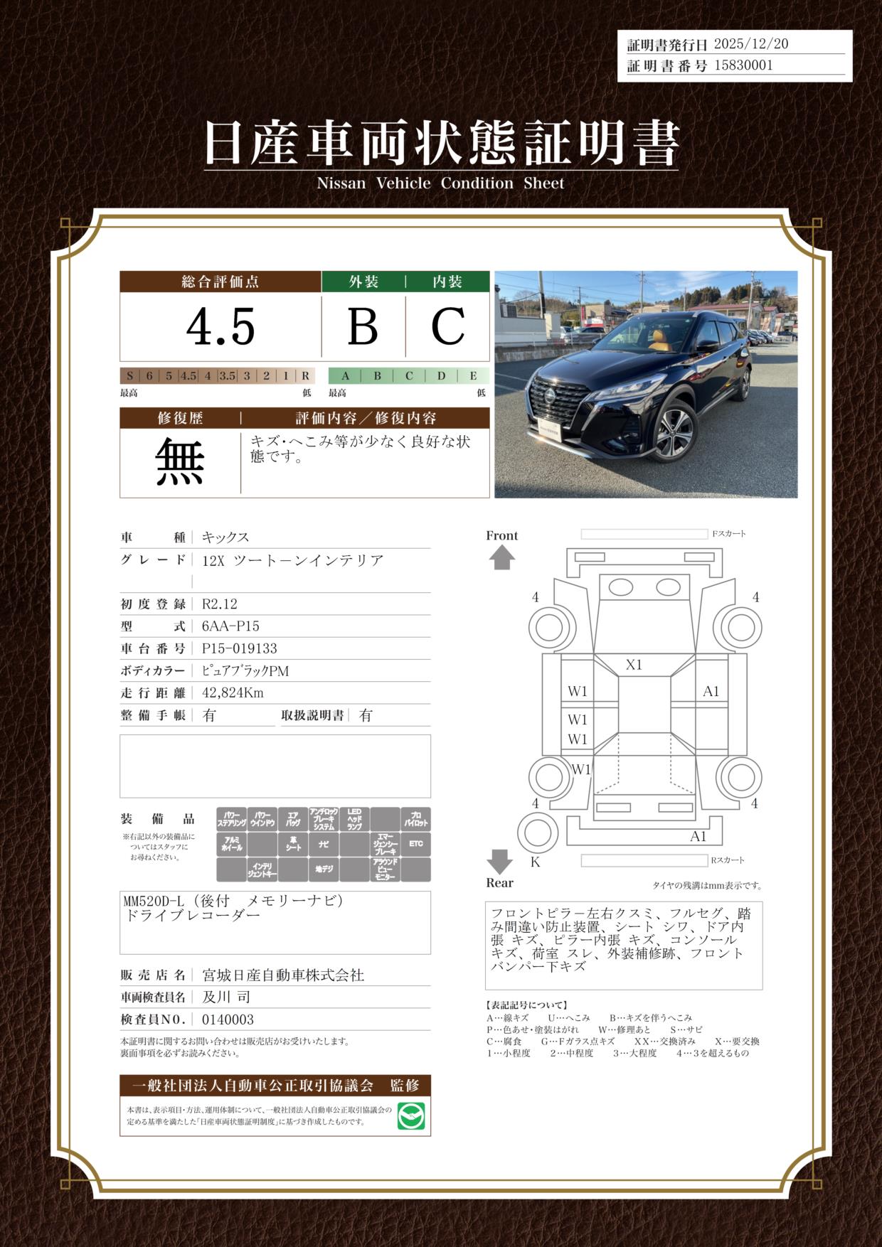 現状車検切れの状態ですが、ご成約時に新しく車検を実施します。車検費用は車両価格に含まれています。