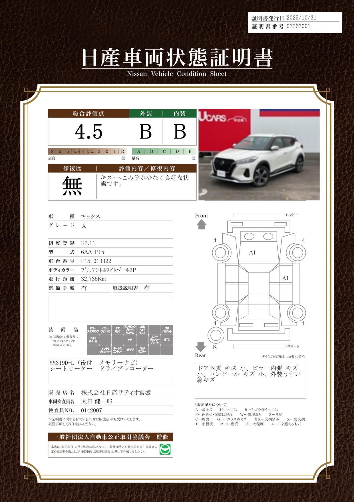 現状括弧書き内の年月まで車検有効期限が残っていますが、ご成約時に新しく車検を取り直します。なお取り直しの費用は車両価格に含まれています。