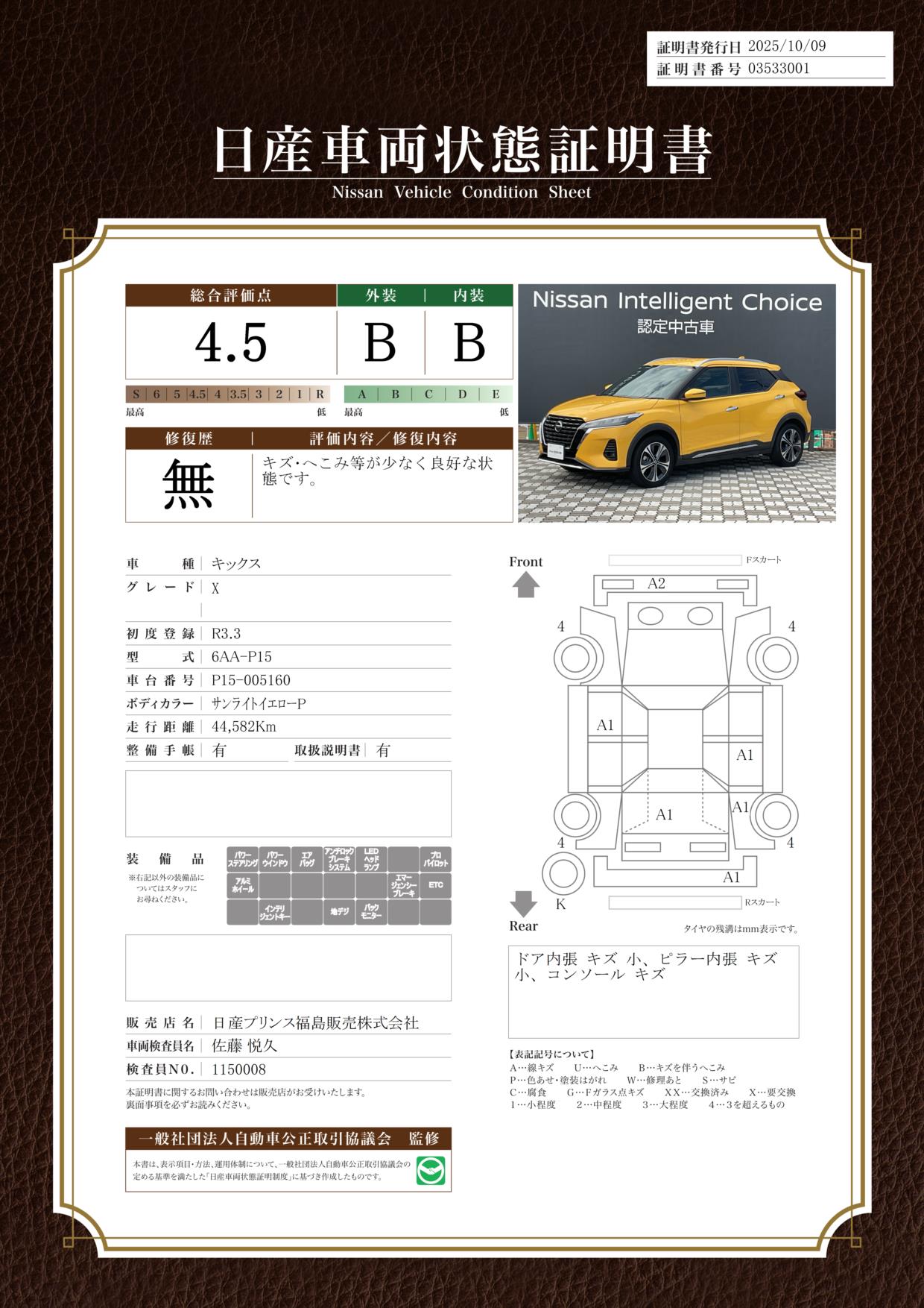 キックス 1200cc 1.2 X (e-POWER) 純正ナビ 全周囲カメラ
