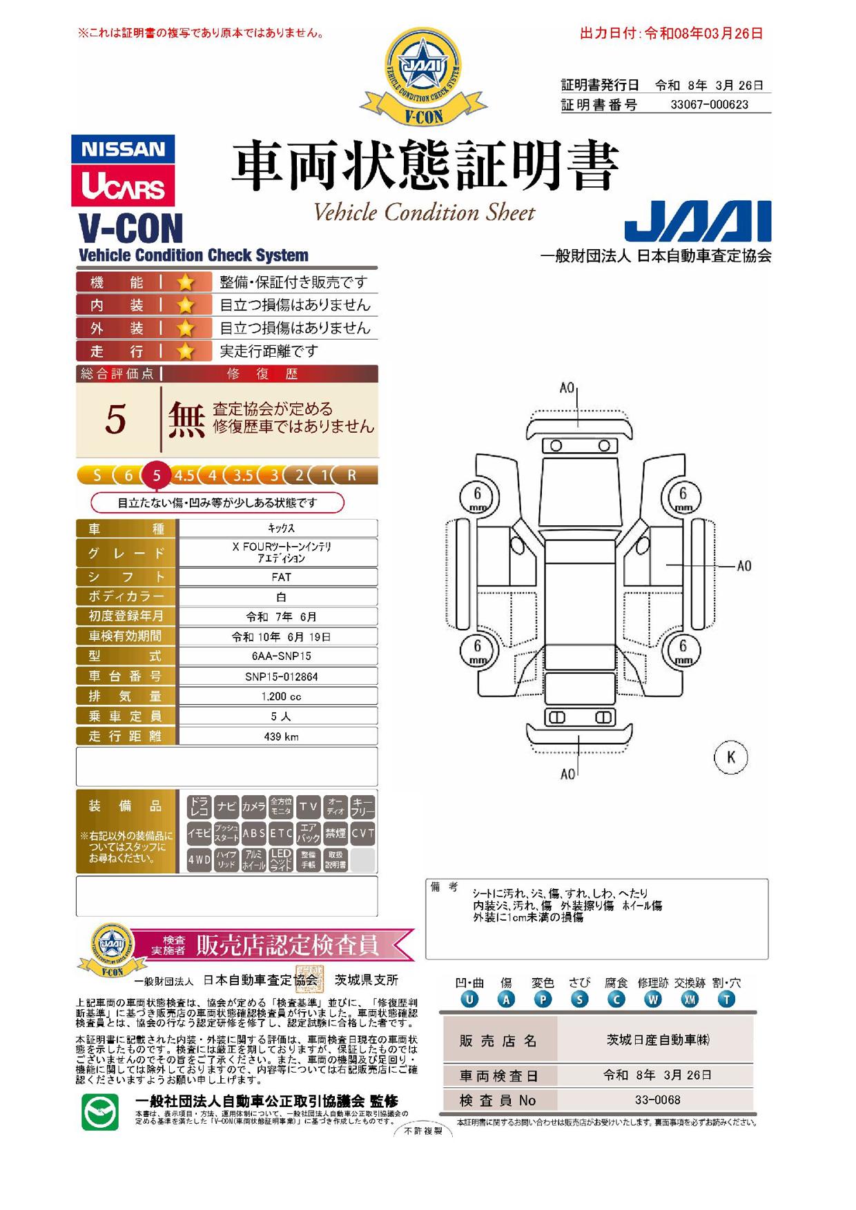 「車両状態証明書」は、査定協会監修のプロの検査員が公正かつ確かな基準で検査した”安心の証”です。