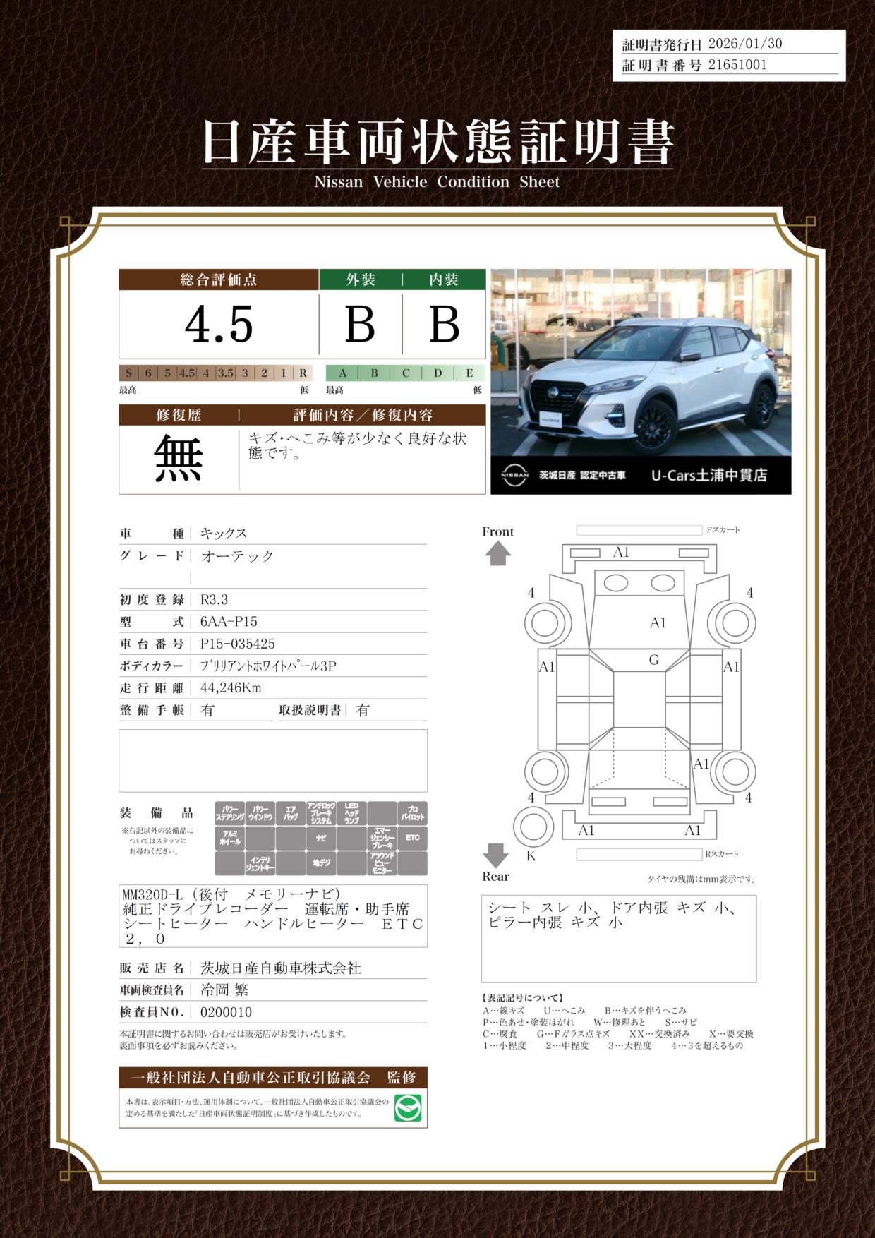 購入から3か月間、走行距離無制限で保証。