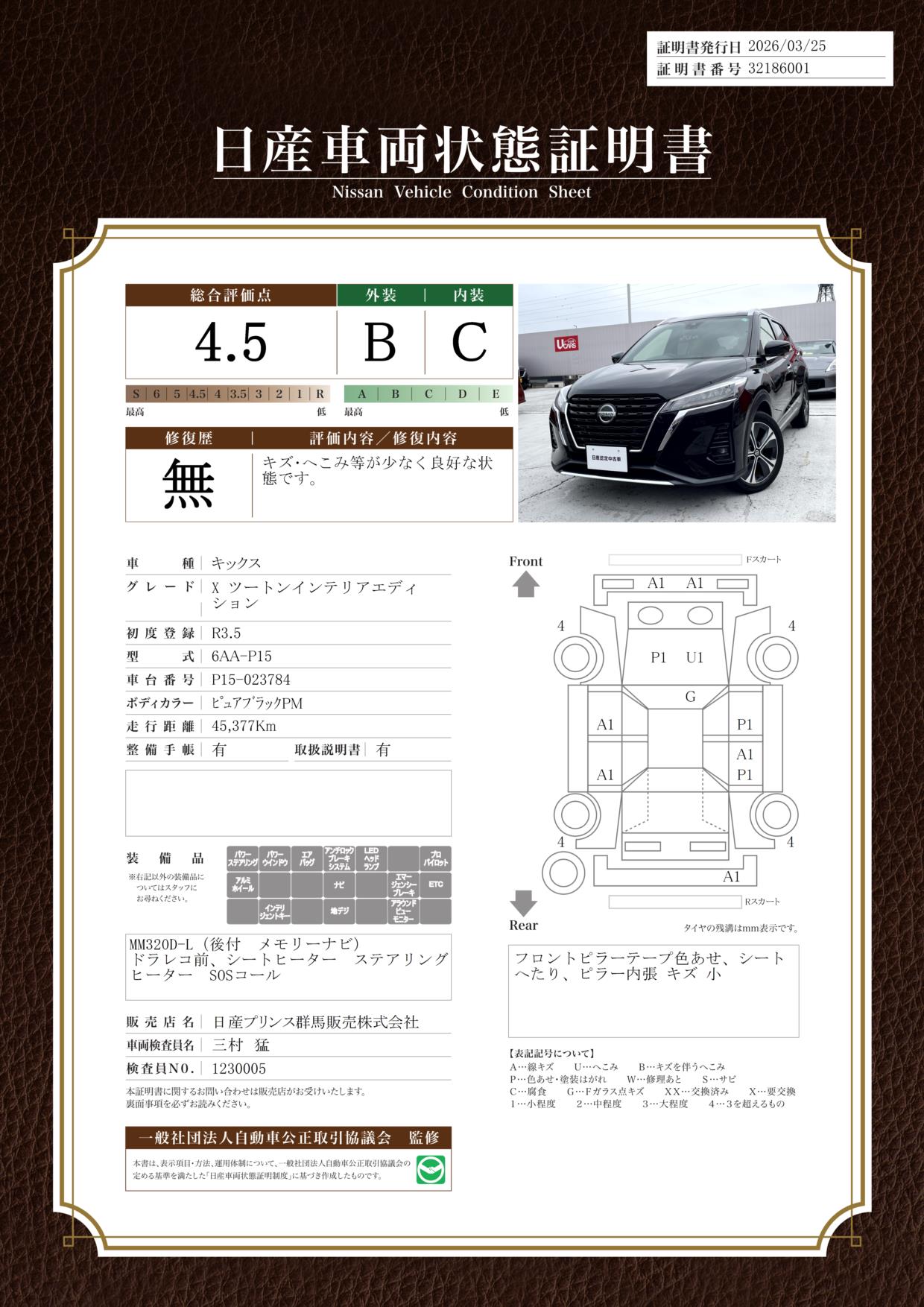 「車両状態証明書」は、査定協会監修のプロの検査員が公正かつ確かな基準で検査した”安心の証”です。